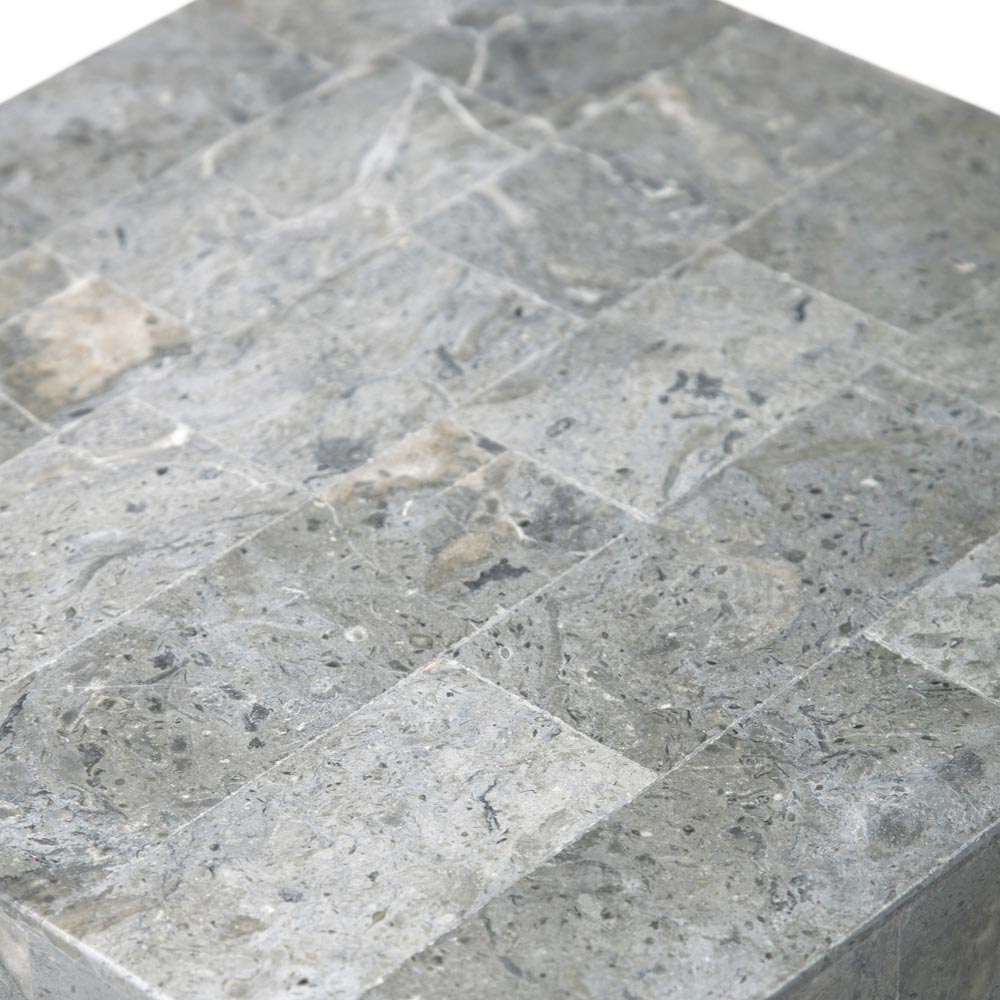 Wysoki stolik kawowy z szarego kamienia kopalnego.