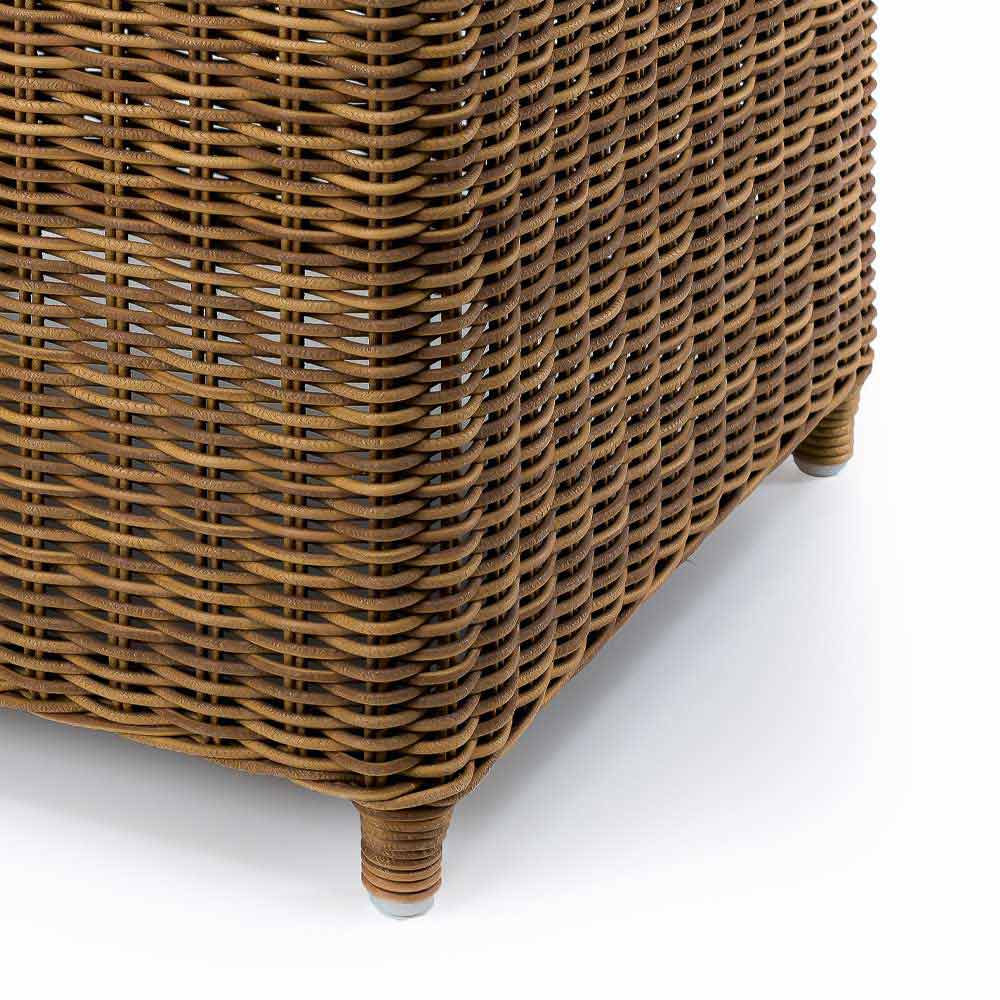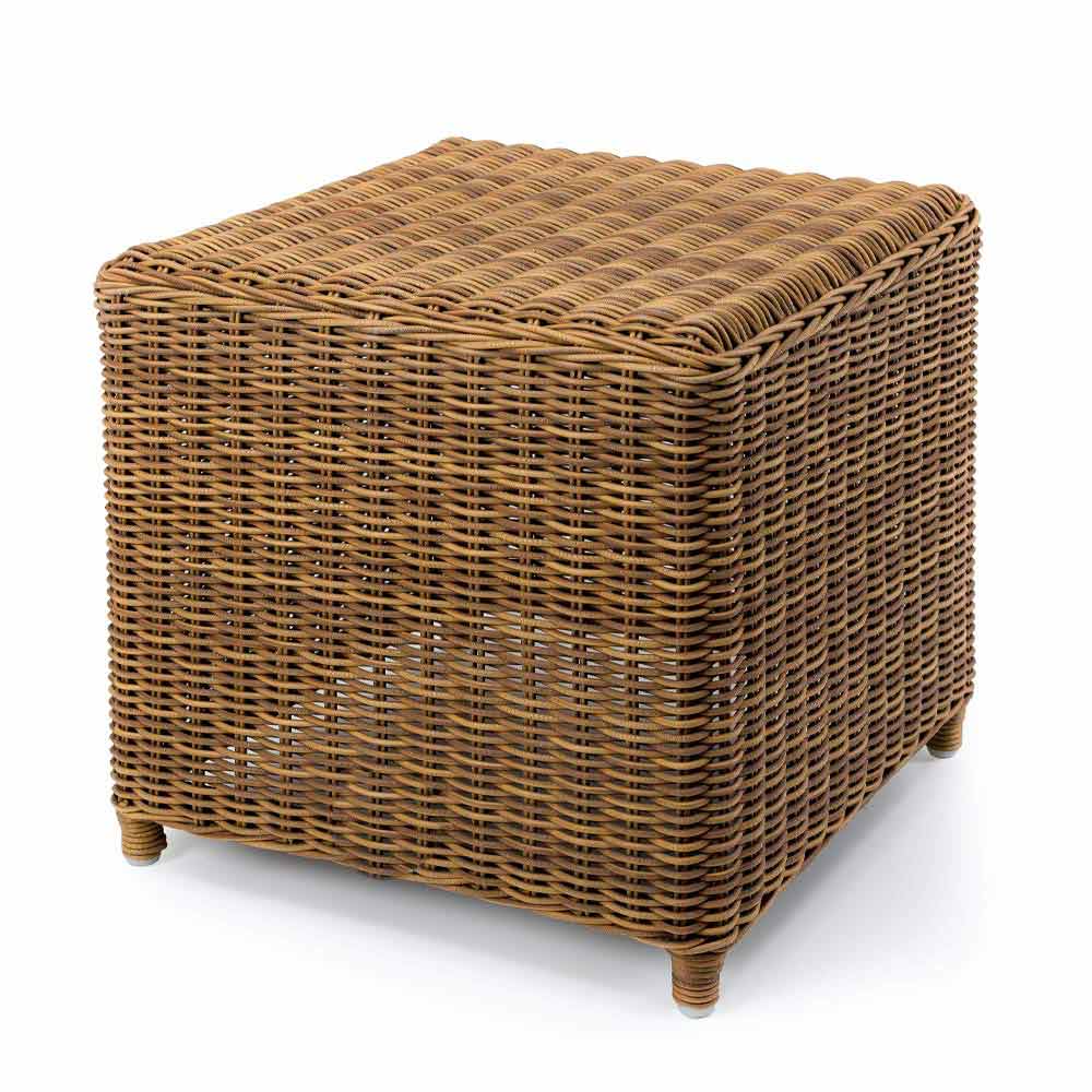 Kwadratowy stolik boczny z cienkiego, syntetycznego rattanu, luksusowy design.