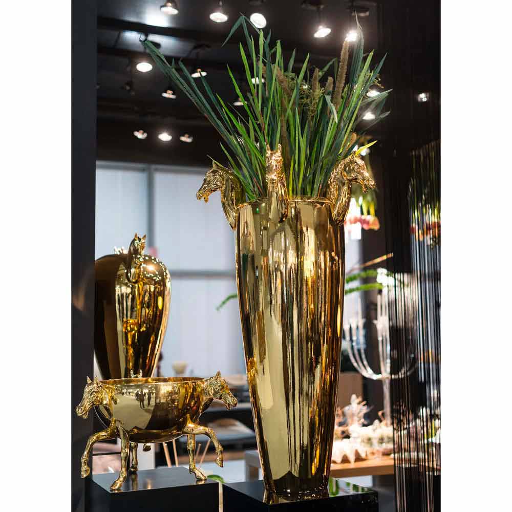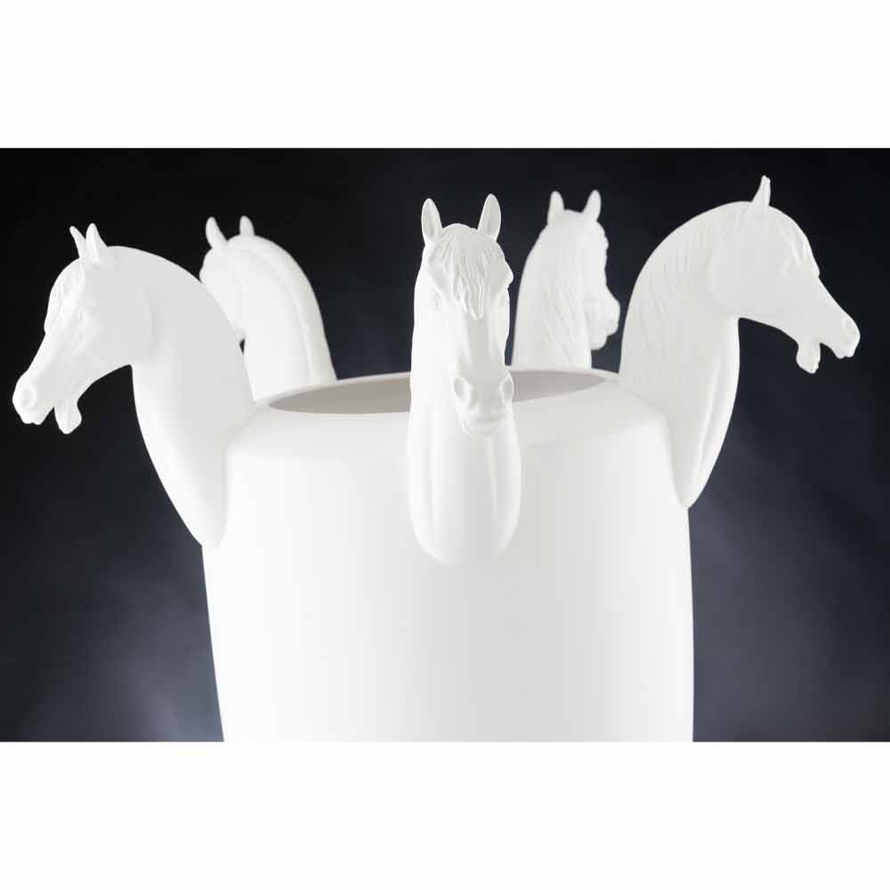 rzemieślników, którzy są ekspertami w branży od pokoleń. Uzupełnienie o niezbędną i elegancką estetykę wzbogacone i uczynione wyjątkowym dzięki oryginalnym detalom w kształcie konia umieszczonym w górnej części wazonu, które podkreślają jego twórczą duszę i sprawiają, że jest to idealne rozwiązanie zarówno dla środowisk w stylu klasycznym, jak i bardziej nowoczesnych przestrzeni, w których tworzy wspaniałą grę kontrastów pomiędzy różnymi stylami. Produkcja