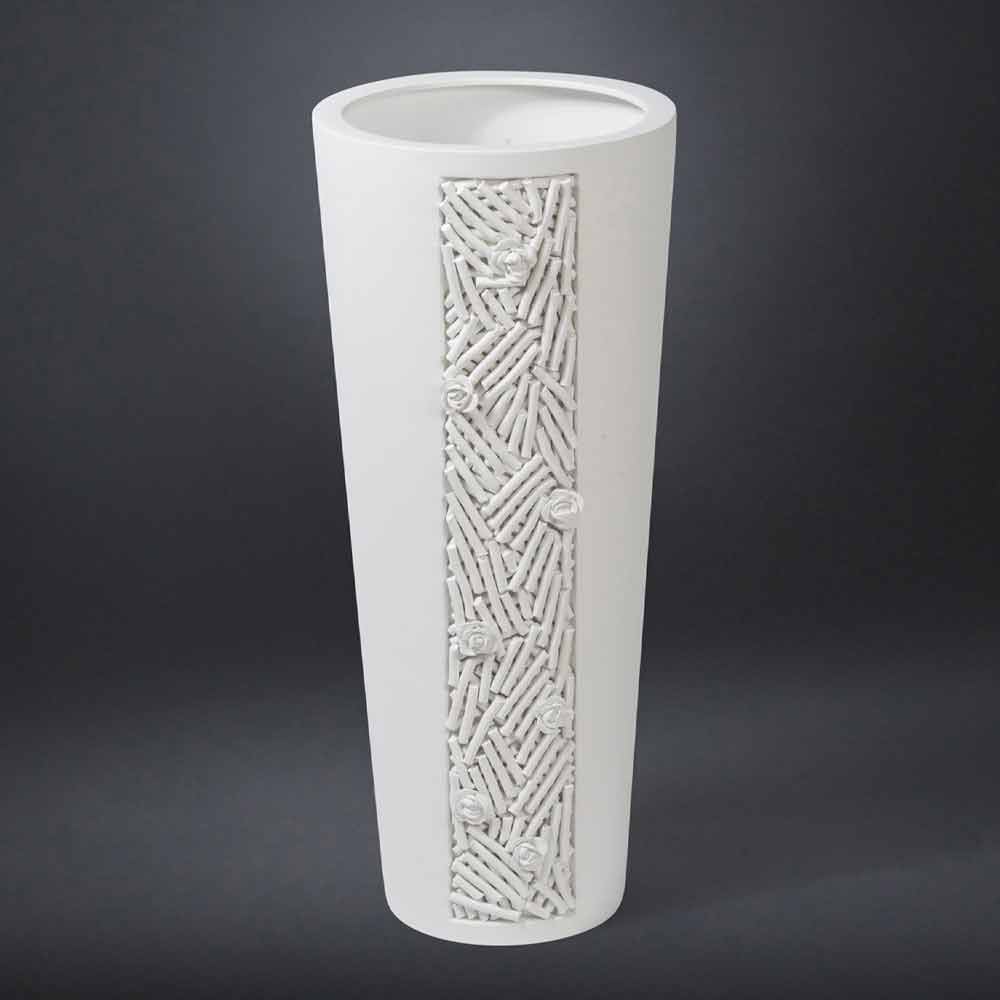 Wysoki wazon do wnętrz z matowej białej ceramiki ręcznie robionej Made in Italy.