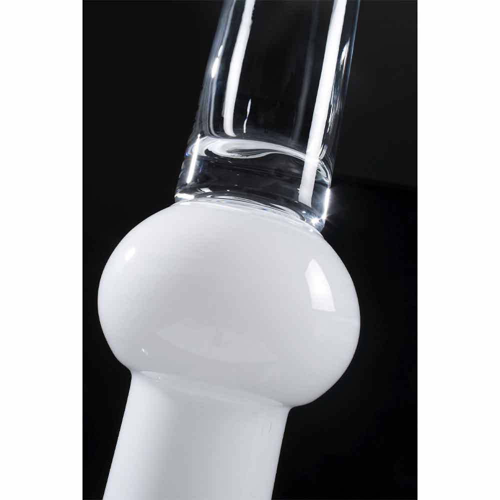 Wysoki wazon dekoracyjny z białego i przezroczystego szkła wyprodukowany we Włoszech.