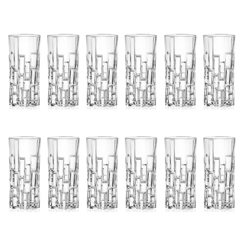 Wysokie szklanki z eko kryształu z dekoracją rzeźbiarską, 12 sztuk wyprodukowane we Włoszech.
