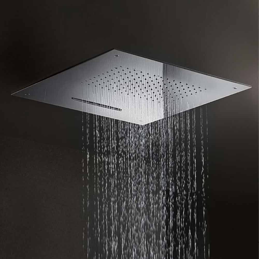 Nowoczesna kwadratowa głowica prysznicowa ze stali nierdzewnej z podwójnym strumieniem, produkt wysokiej jakości Made in Italy.
