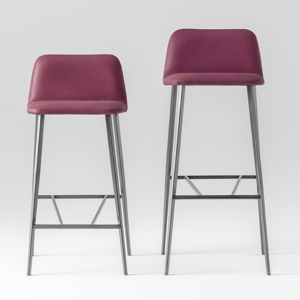Wysoki stołek wykonany we Włoszech ze strukturą z malowanego metalu z wykończeniem w kolorze antracytu ołowiu i wyściełaną skorupą pokrytą skórą . Krzesło o prostych, ale oryginalnych cechach, charakteryzujące się funkcjonalnością i niezrównanym pięknem, idealne do personalizacji i uczynienia wyposażenia kuchni lub środowisk kontraktowych wyjątkowym, w którym można stworzyć wyrafinowaną atmosferę i wspaniałą harmonię między stylami. Również dzięki wyborowi wykorzystania skóry na tapicerkę ten stołek ma szczególnie fascynującą duszę, która nadaje mu trzeźwy, dyskretny i elegancki design.