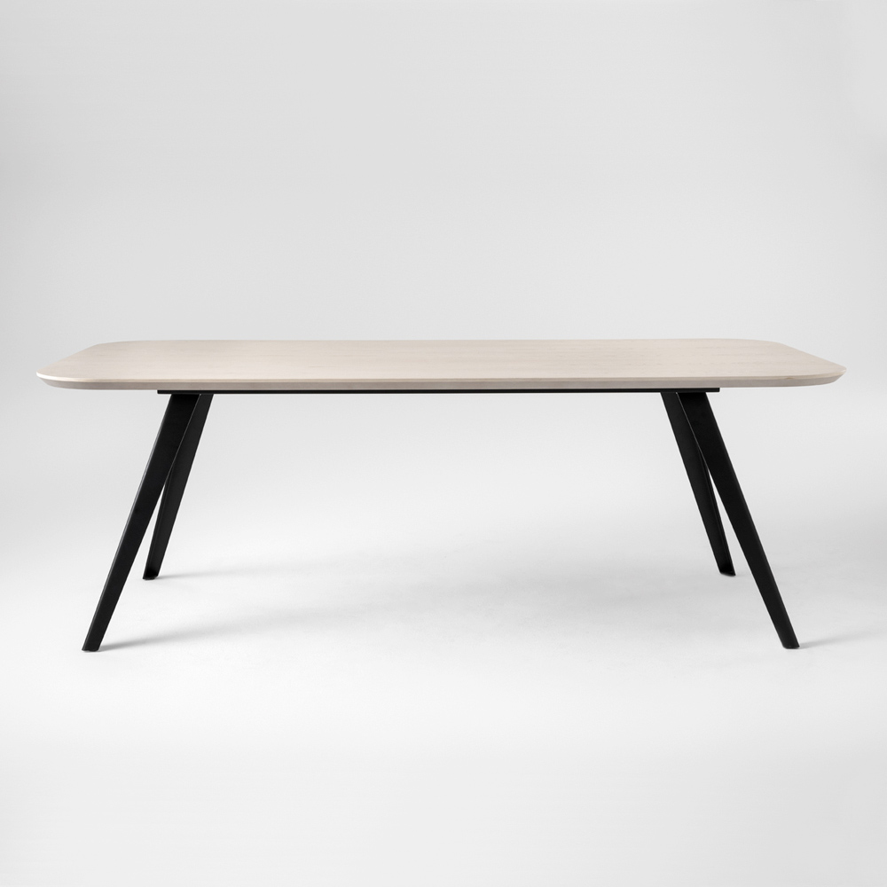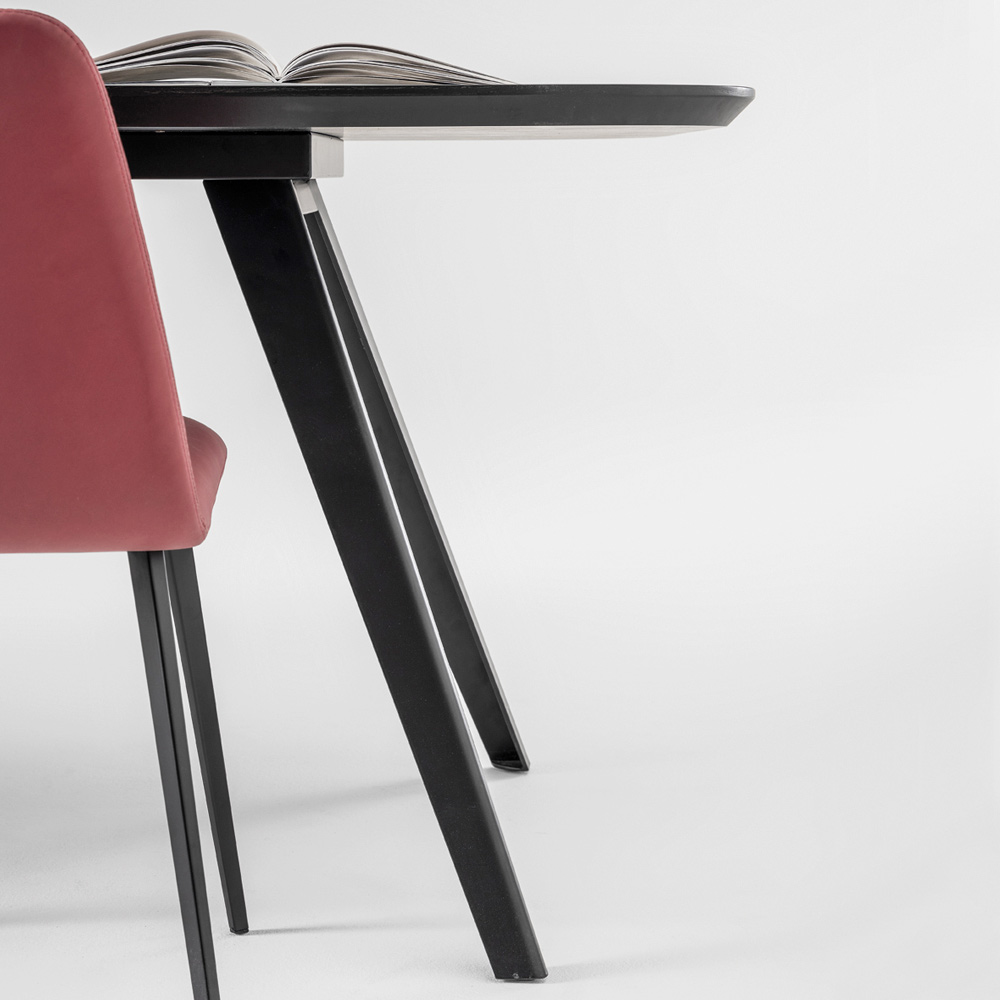 Wysokiej jakości metalowy stół do jadalni z blatem z jesionu Made in Italy.