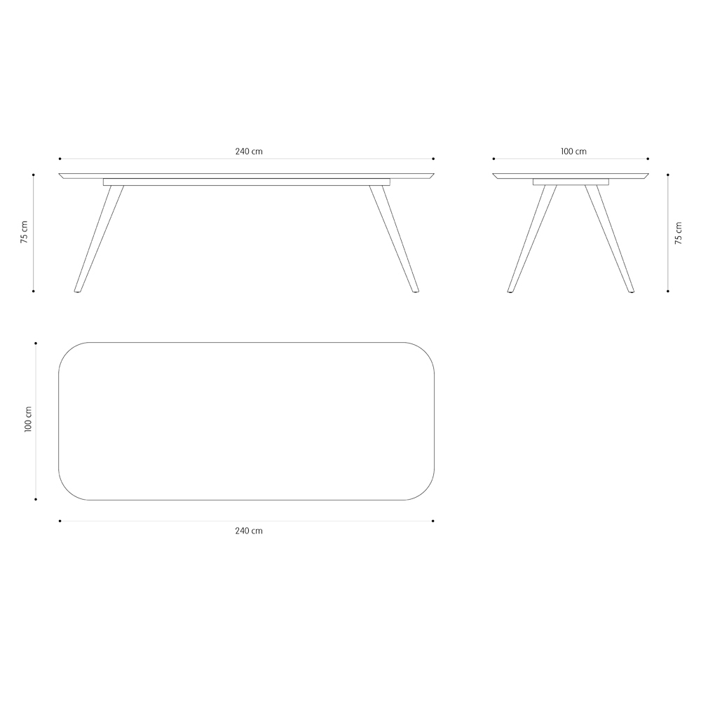 - Dł. 240 x szer. 100 x wys. 75 cm.
