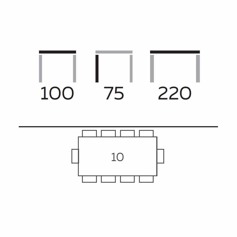 - Dł. 220 x szer. 100 x wys. 75 cm;