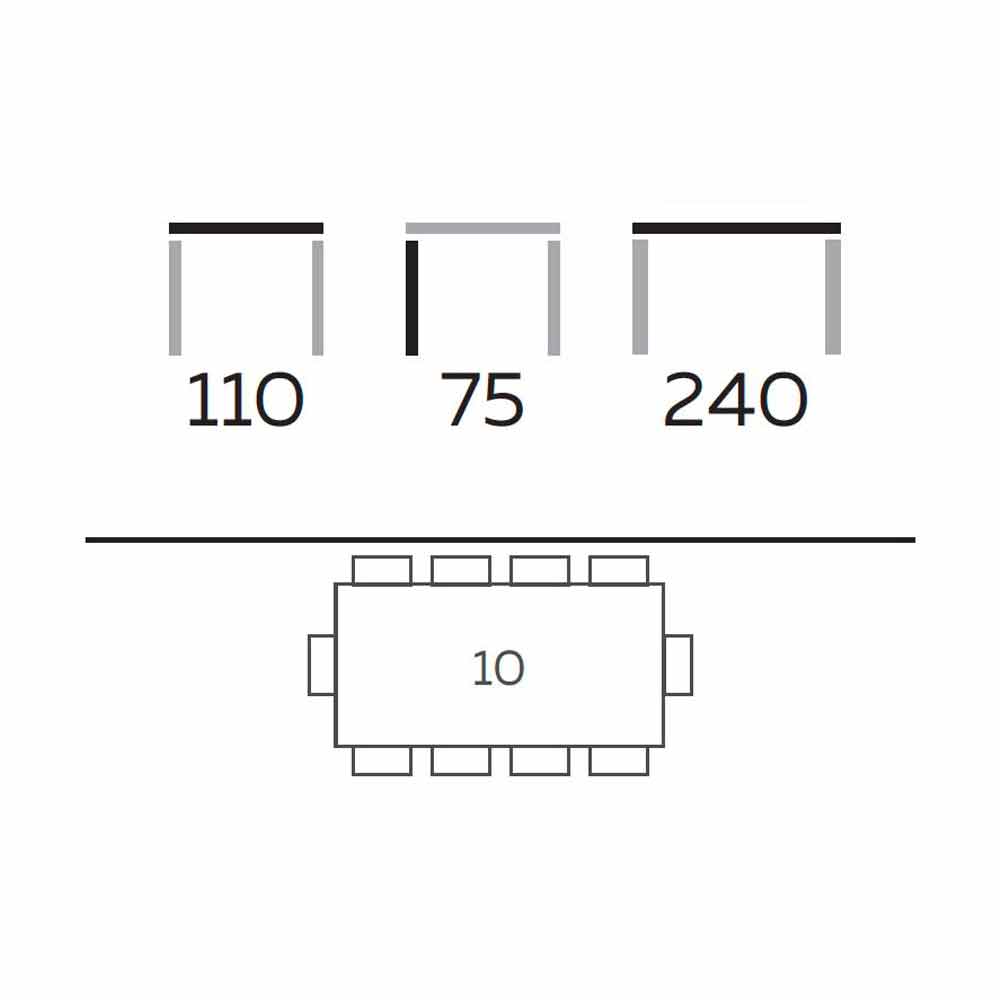 - Dł. 240 x szer. 110 x wys. 75 cm.