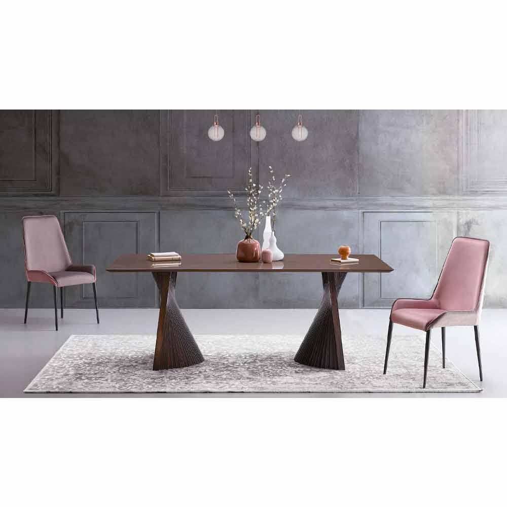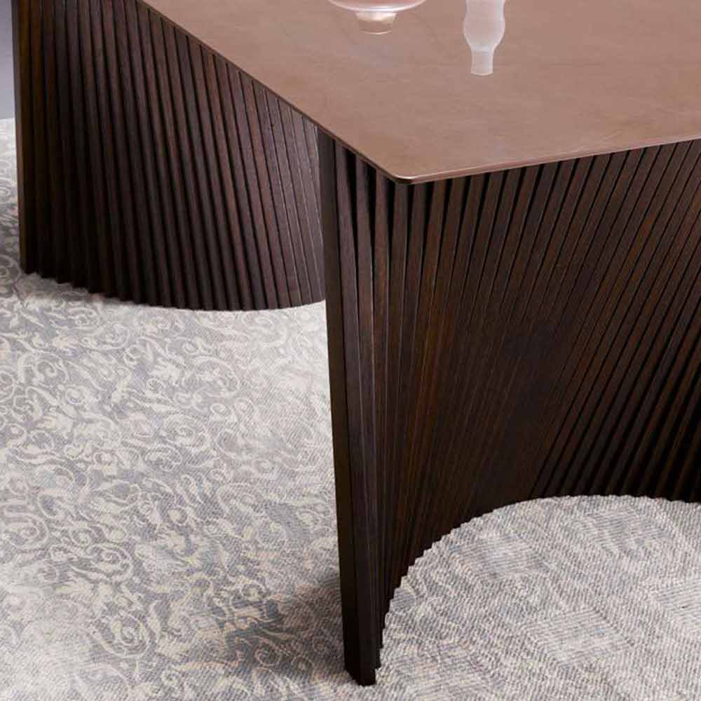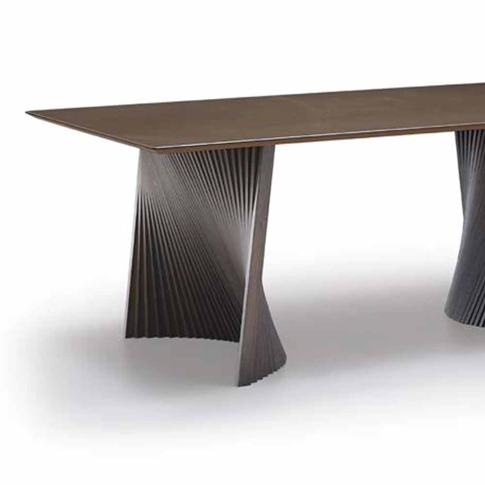 Stół do jadalni z blatem kamionkowym i nogami z drewna jesionowego, luksusowy produkt Made in Italy.