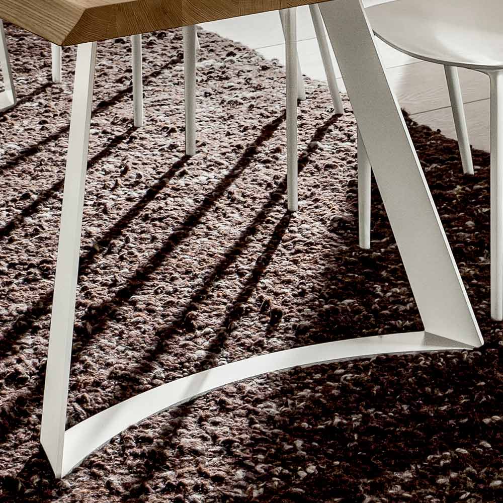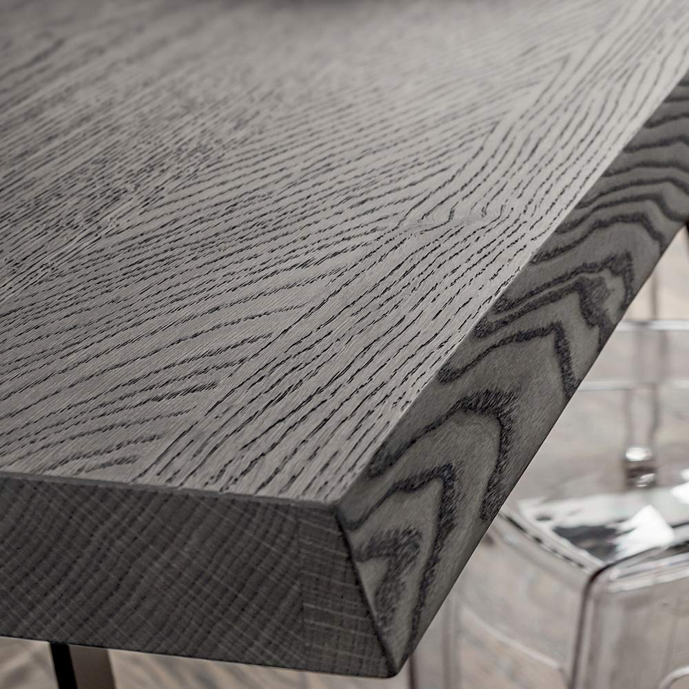 osobowością i stylem . Szczególny kształt nóg nadaje stołowi jeszcze bardziej oryginalny i wyrafinowany styl, idealny dla tych, którzy lubią dekorować swoje przestrzenie w trzeźwy i elegancki sposób. Drewniany blat z okorowanymi krawędziami wzbogaca efekt końcowy o bardziej rustykalny akcent, tworząc