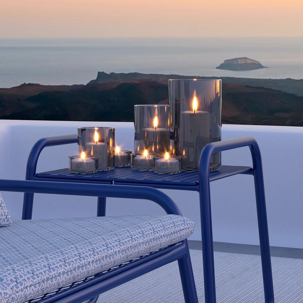 stolik kawowy na zewnątrz ma rygorystyczny projekt o zdecydowanie współczesnym smaku, ale solidną i imponującą sylwetkę łagodzą zaokrąglone nogi.