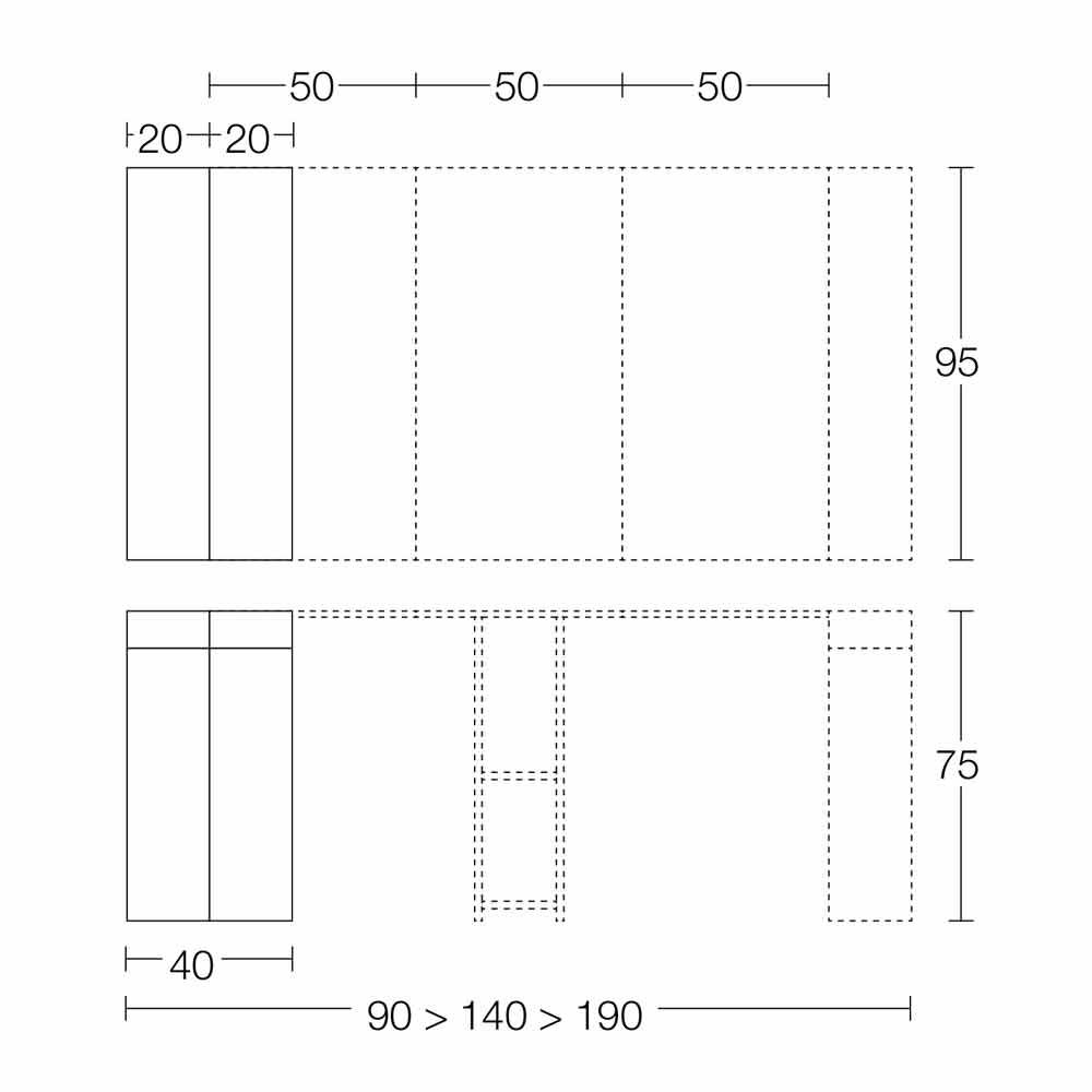 Środki:- Konsola: dł. 95 x gł. 40 x wys. 75 cm; Stół szer. 90/140/190 x gł. 95 x wys. 75 cm