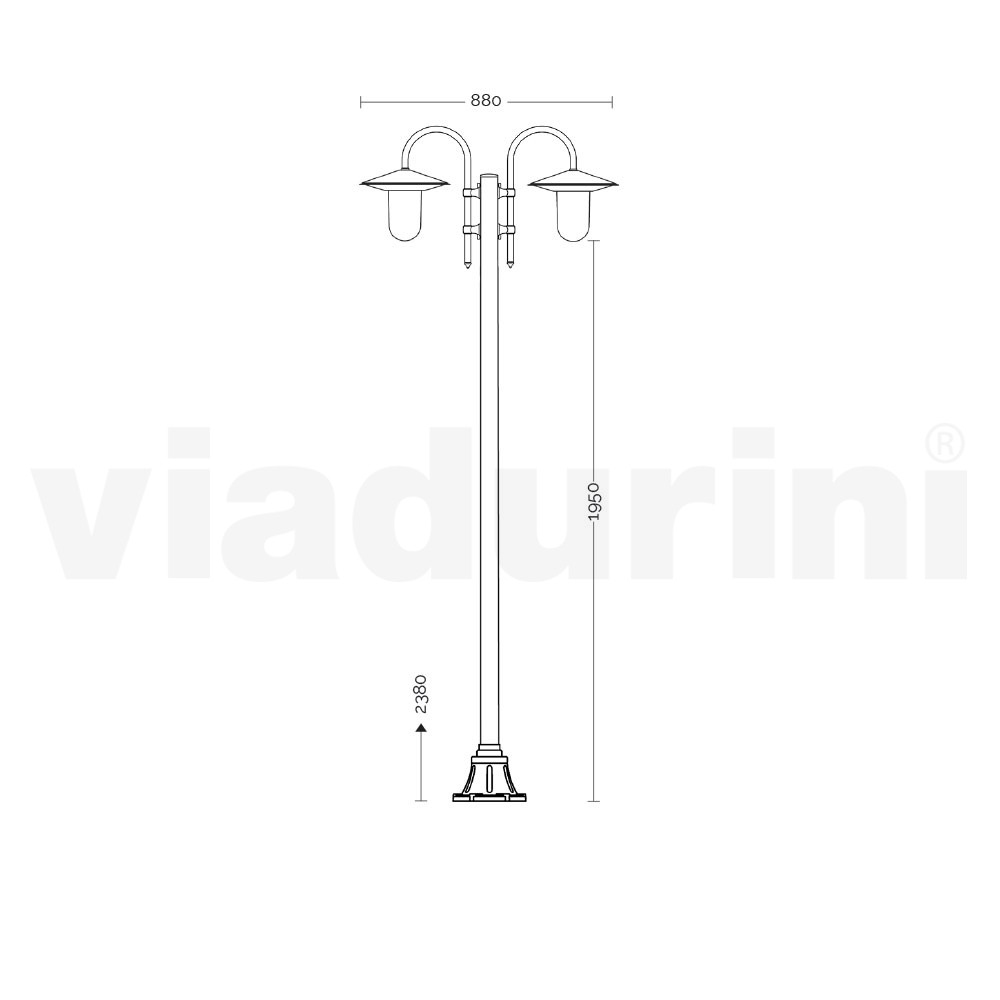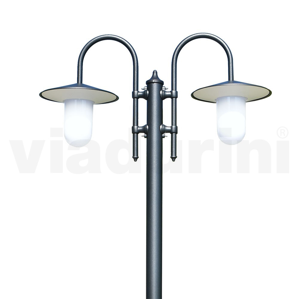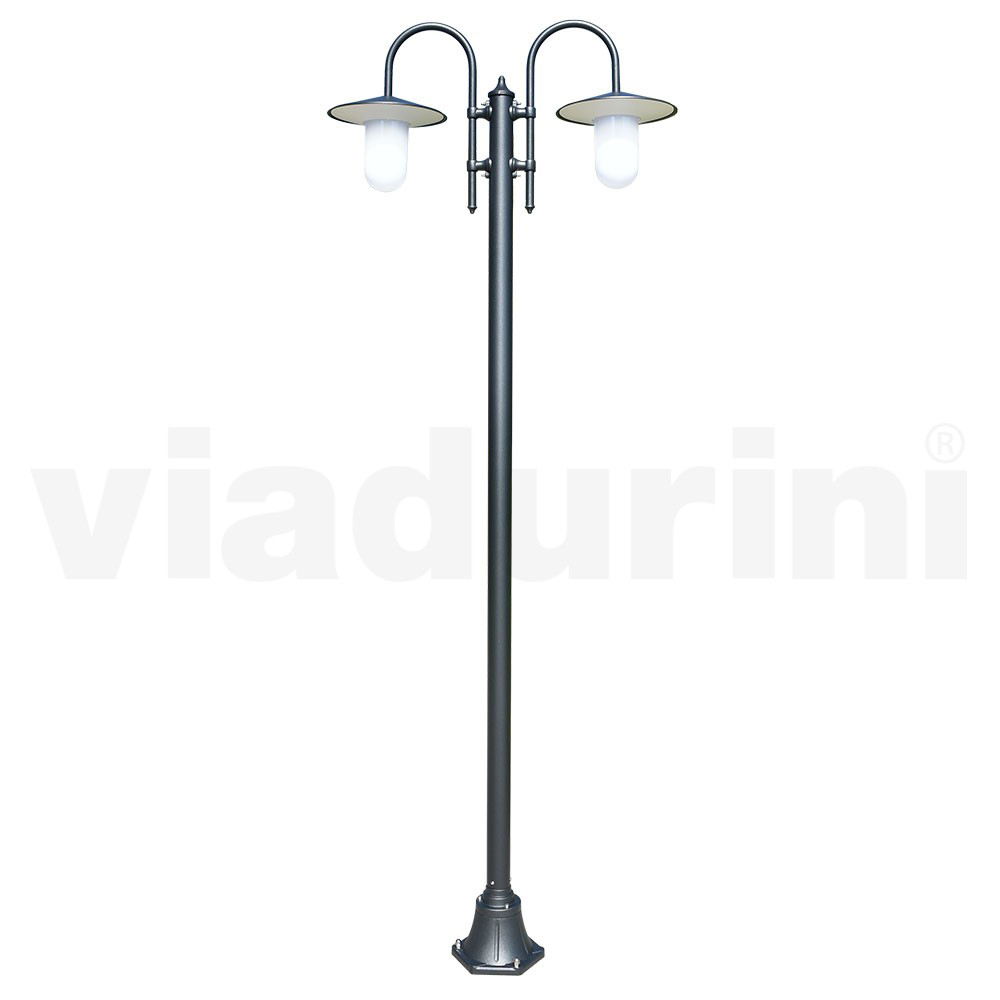 Dwupunktowa lampa ogrodowa w stylu vintage z aluminiową konstrukcją. Wyprodukowano we Włoszech.