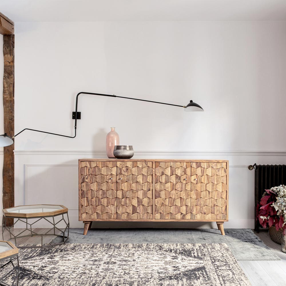 Kredens z drewna sheesham z 4 drzwiami w etnicznym stylu.