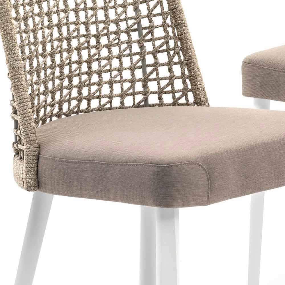 Emma to krzesło ogrodowe z ręcznie tkaną strukturą z włókien syntetycznych z beżową, malowaną proszkowo ramą aluminiową.
