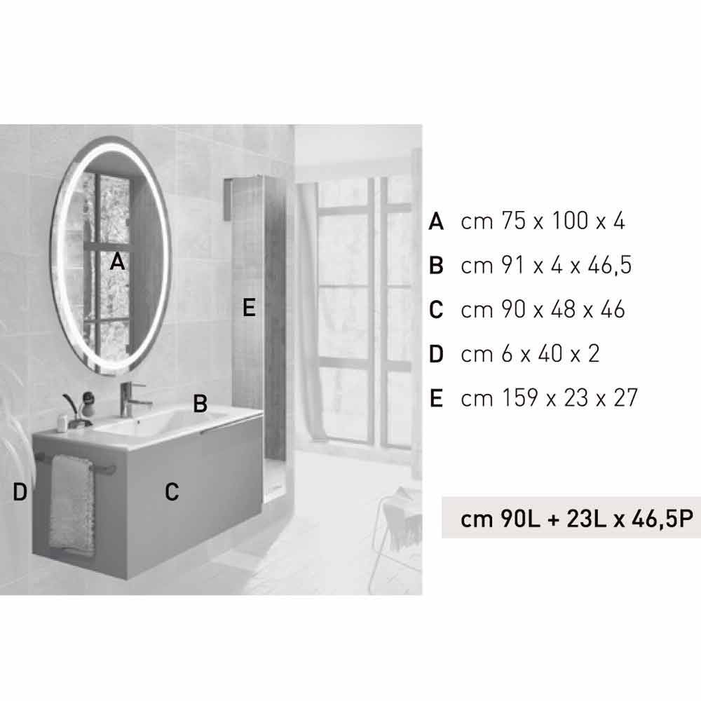 - lustro owalne ze zintegrowanym podświetleniem LED z krawędziami ze stali inox; D75xW100xP4 cm;