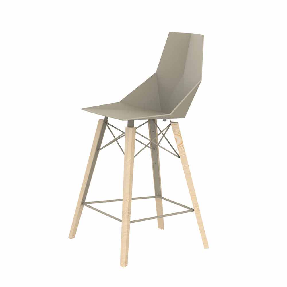 Taboret kuchenny o konstrukcji z drewna jesionowego z polipropylenowym siedziskiem i oparciem w różnych kolorach.