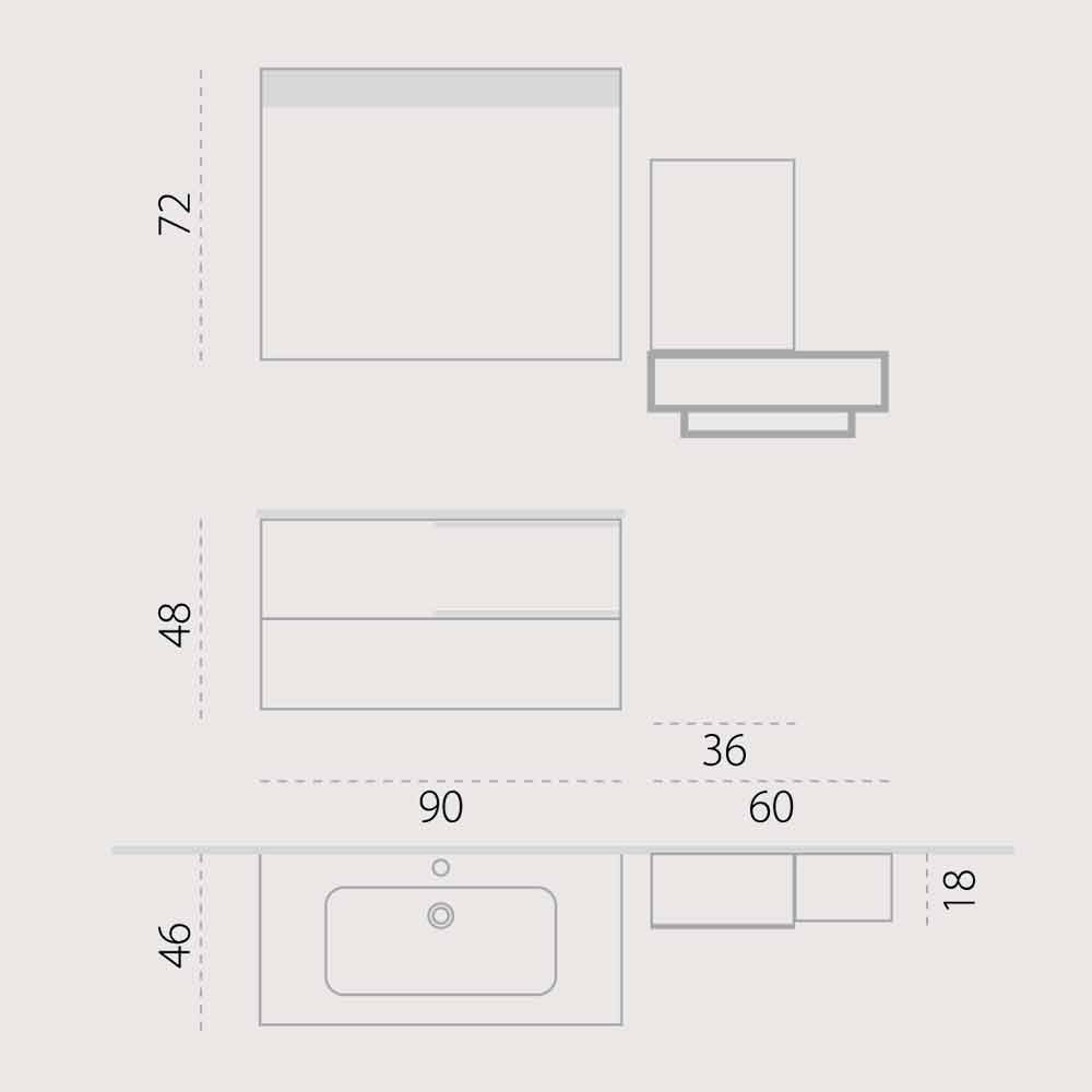 - prostokątne lustro ze zintegrowanym oświetleniem LED; D90xW72xP4 cm;