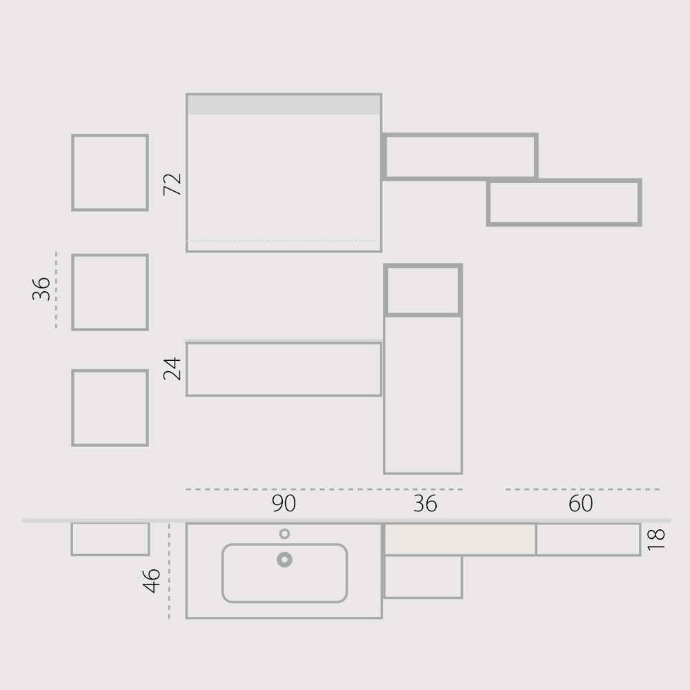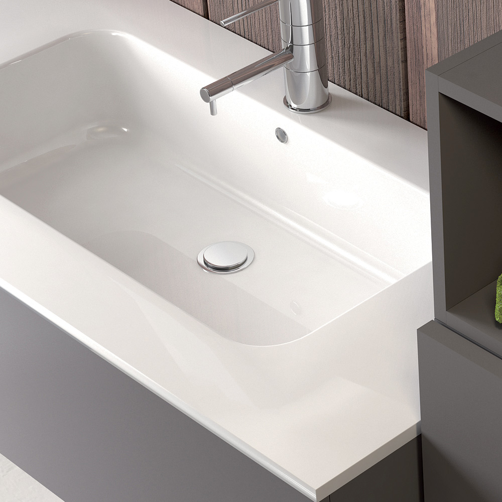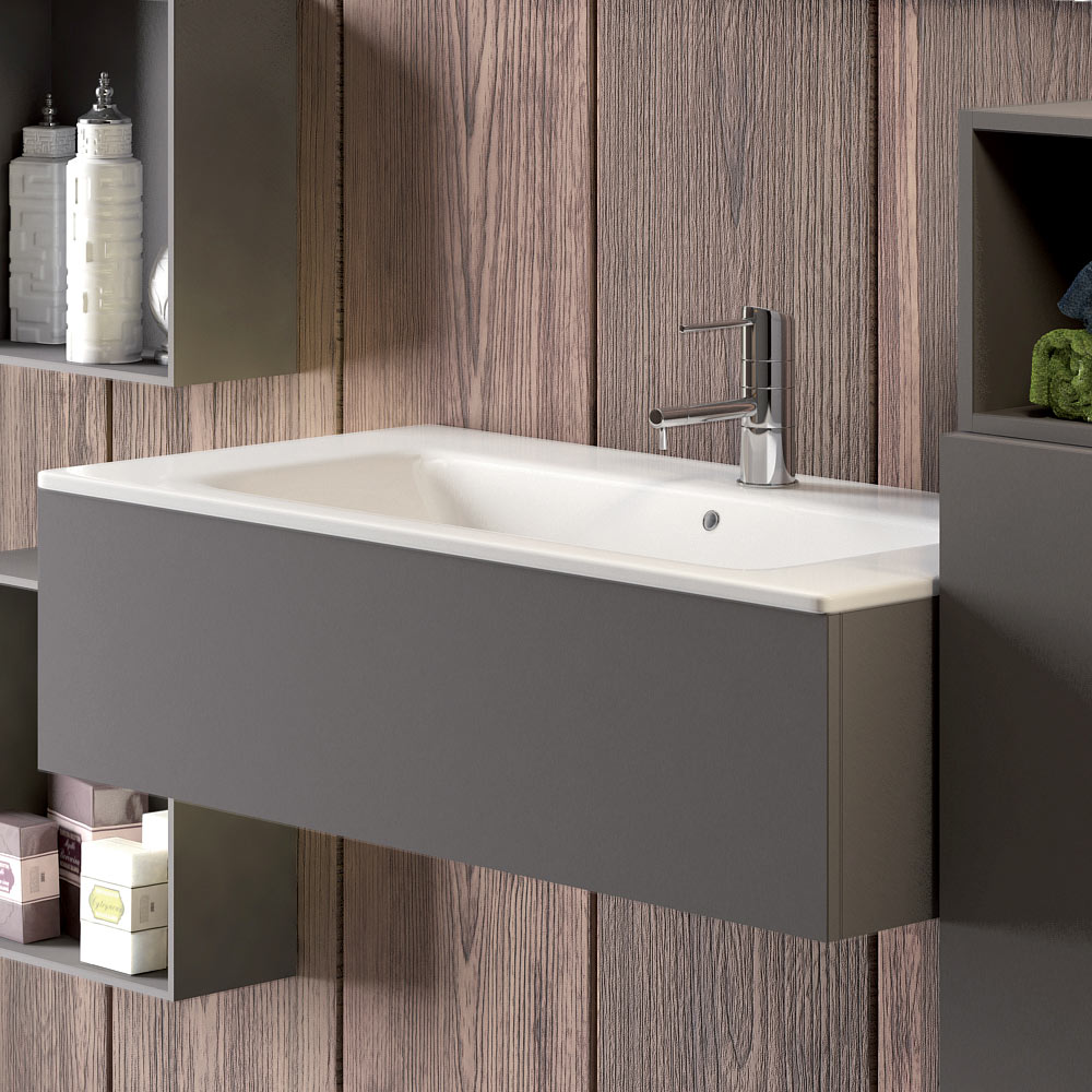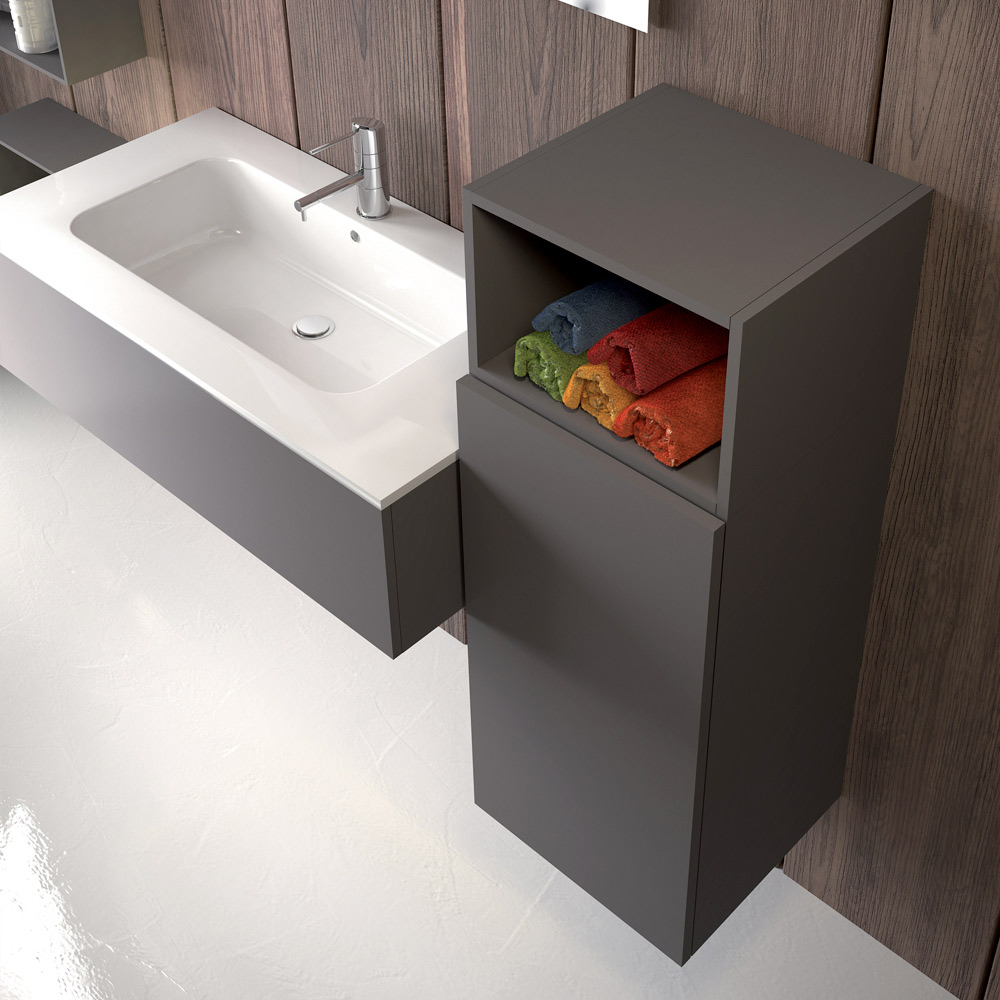Napoli to zestaw podwieszanych mebli łazienkowych wykonanych z różnych materiałów i wykończeń oraz z możliwością niezliczonych kombinacji dzięki różnym elementom, w wyniku czego uzyskuje się elastyczną geometrię łazienki wykraczającą poza utarte schematy.