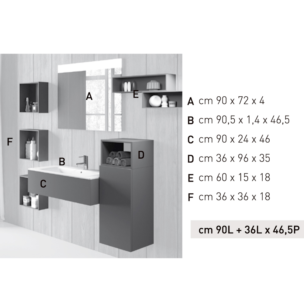 - Podstawa umywalki w kolorze przydymionej szarości Fenix; Dł. 90 x wys. 24 x gł. 46 cm;