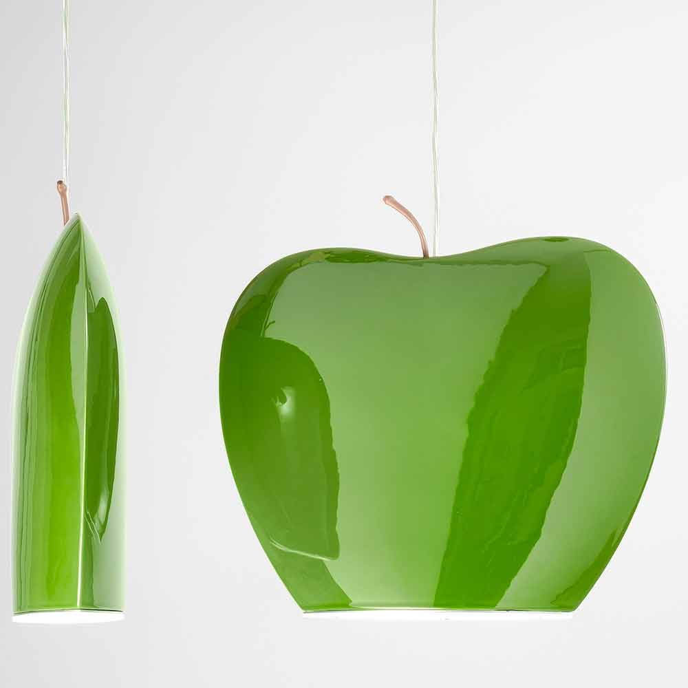 Oświetlenie o ekscentrycznym designie: ceramiczne zawieszenie w kształcie jabłka, kolekcja Fruits Aldo Bernardi.
