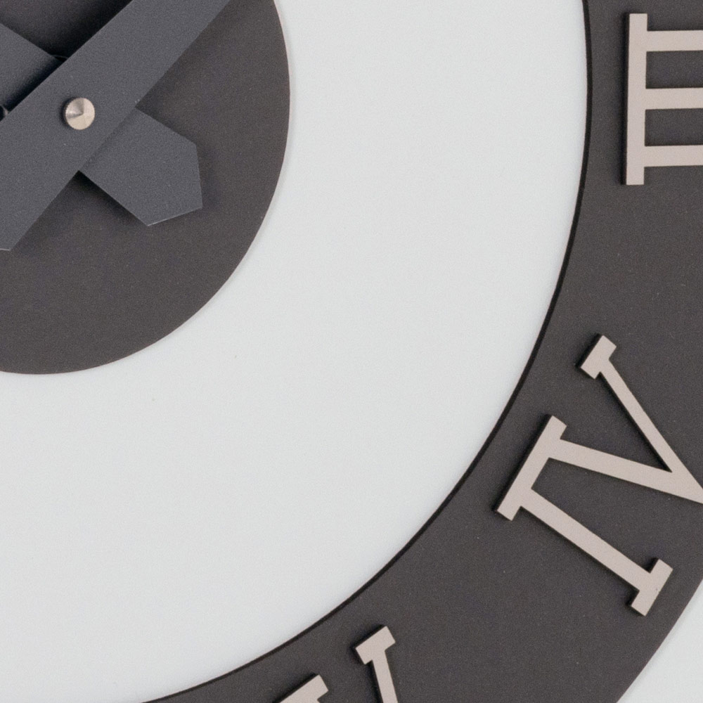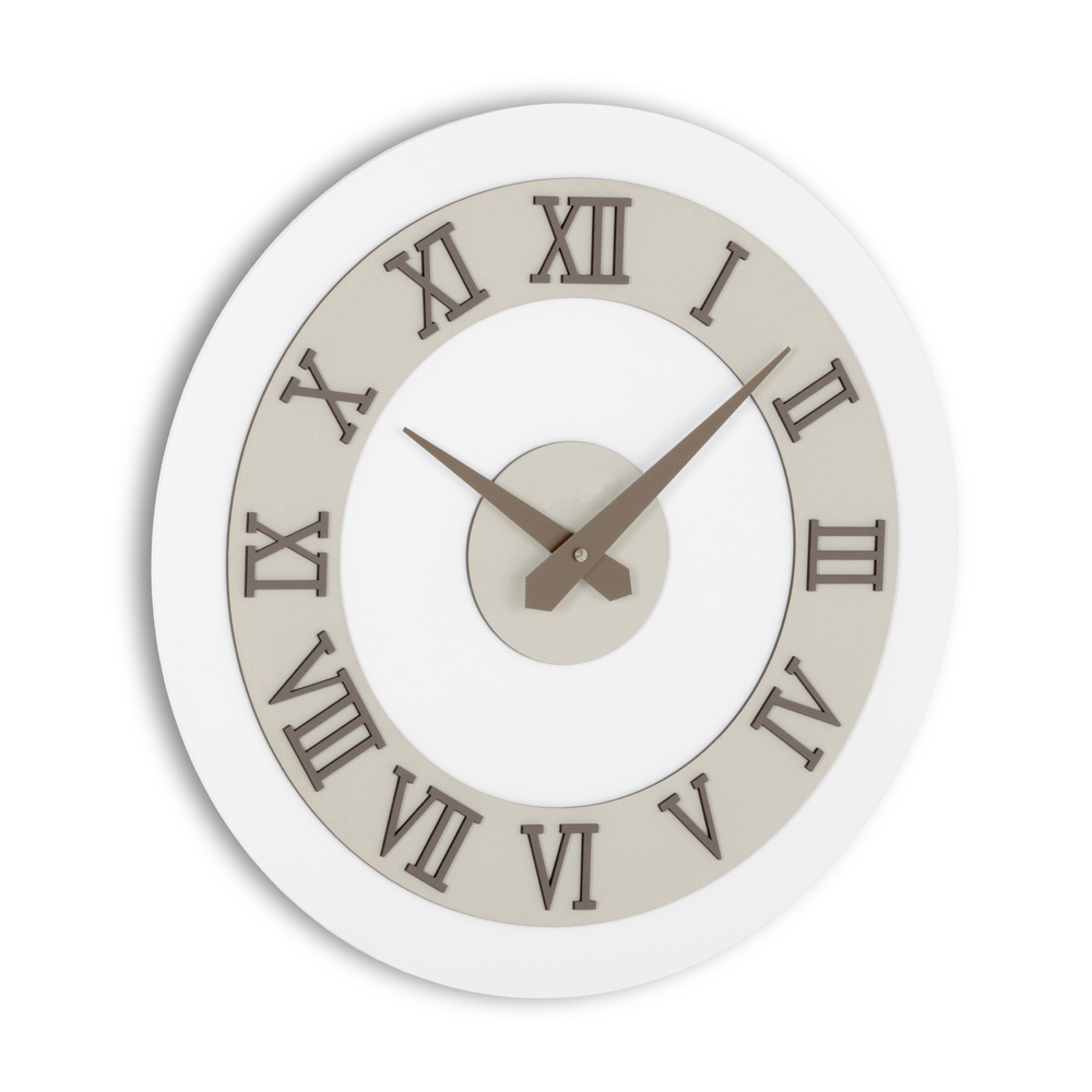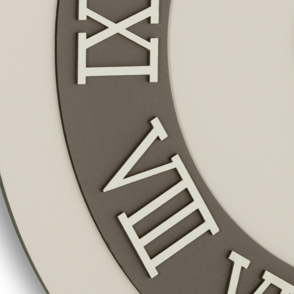 Podkład MDF laminowany folią polipropylenową posiada poszukiwane tekstury, które tworzą unikalne kontrasty wizualne i nowoczesne odcienie, idealne do eleganckich i charakterystycznych wnętrz. Prawdziwy charakterystyczny akcent? Cyfry rzymskie w reliefie wykonanym z warstwowo prasowanego lnu, uzyskanego ze zrównoważonych środowiskowo surowców naturalnych: solidna powierzchnia, przyjemna w dotyku i niezwykle wyrafinowana.