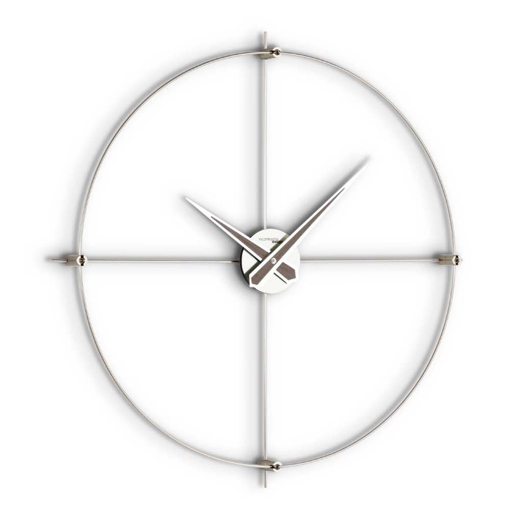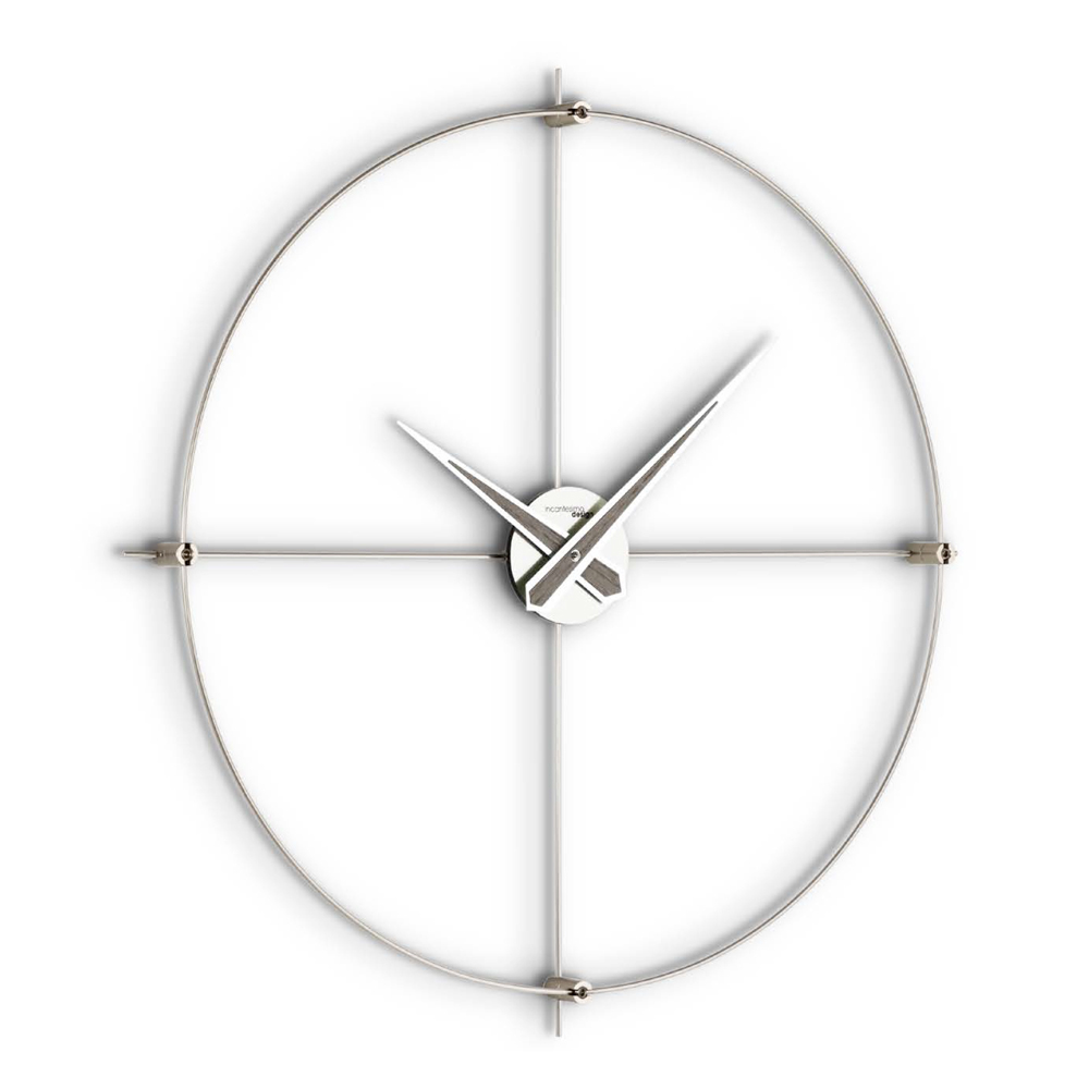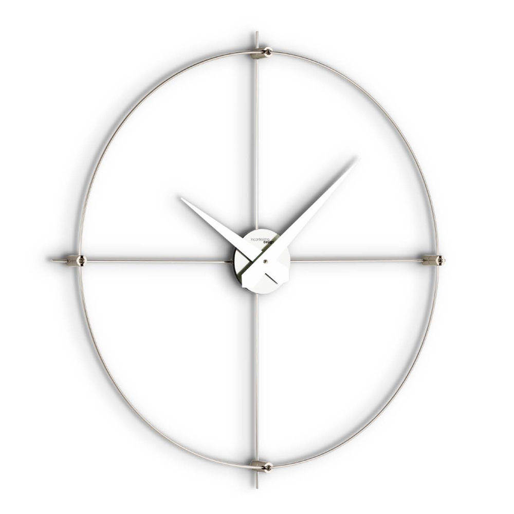 Ten zegar ścienny ucieleśnia kwintesencję nowoczesnego minimalizmu . Jego zasadniczy design ze stalową konstrukcją przyciąga wzrok elegancją i prostotą. Wydłużone dłonie z wdziękiem rozciągają się, dotykając krawędzi koła i umożliwiając wyraźny i bezpośredni odczyt czasu .