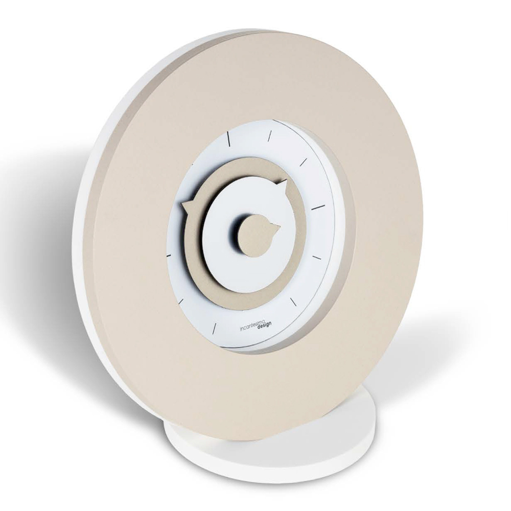 Odkryj triumf nowoczesnego designu dzięki temu zegarowi stołowemu , którego okrągła sylwetka zapewnia dynamiczne i wciągające wrażenia wizualne. Wykończenie z łatwością pasuje do każdego wystroju, dzięki czemu ten zegar będzie wszechstronnym dodatkiem do Twojego domu lub biura.