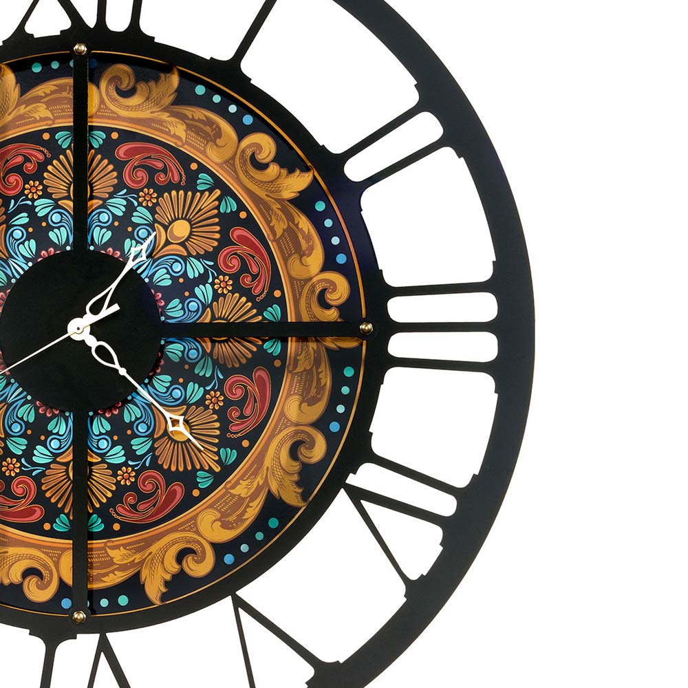 Wyrafinowana i kolorowa dekoracja jest starannie rozmieszczona na tarczy, nadając jej niepowtarzalny wygląd, który przyciąga wzrok każdego, kto wejdzie do pomieszczenia. Wzory i odcienie przywołują poczucie spokoju, ale także energii i witalności.