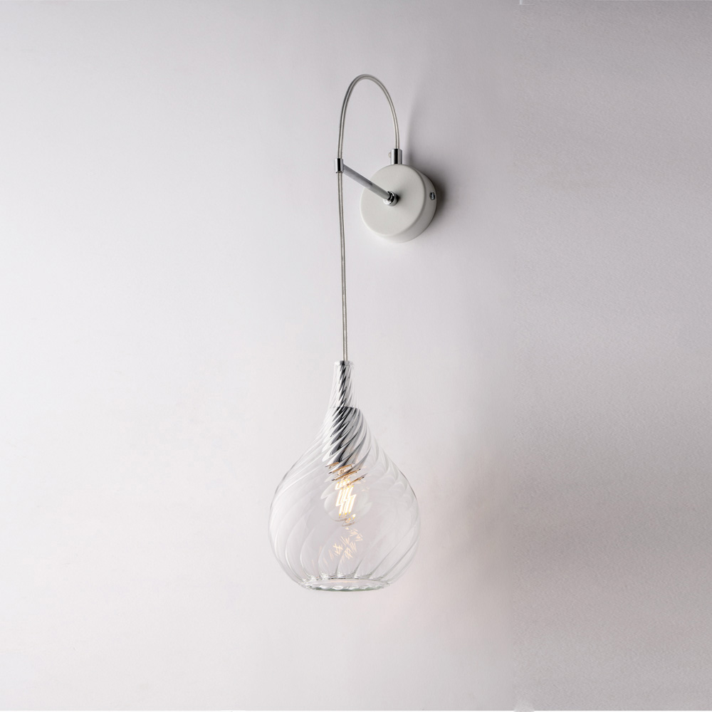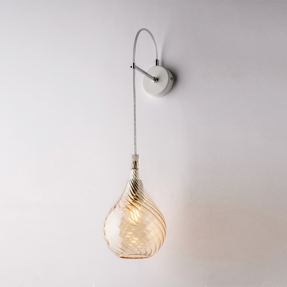 Dostępna w wykończeniu transparentnym , bursztynowym lub szarym , ta lampa ścienna dopasowuje się do różnych stylów aranżacji: jasna i dyskretna w wersji transparentnej, ciepła i otulająca w bursztynowej, nowoczesna i elegancka w szarej. Idealnie nadaje się do korytarzy, sypialni, salonów, przedpokojów i designerskich przestrzeni biurowych , zarówno jako pojedynczy punkt świetlny, jak i element kompozycji.