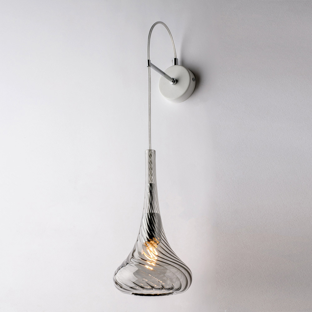 Dostępna w wykończeniu transparentnym , bursztynowym lub szarym , ta lampa ścienna pozwala na stworzenie indywidualnej atmosfery w pomieszczeniu: jasnej i przestronnej w wersji transparentnej, ciepłej i otulającej w bursztynowej, eleganckiej i nowoczesnej w szarej. Idealnie nadaje się do korytarzy , wejść , sypialni , salonów i designerskich przestrzeni biurowych .