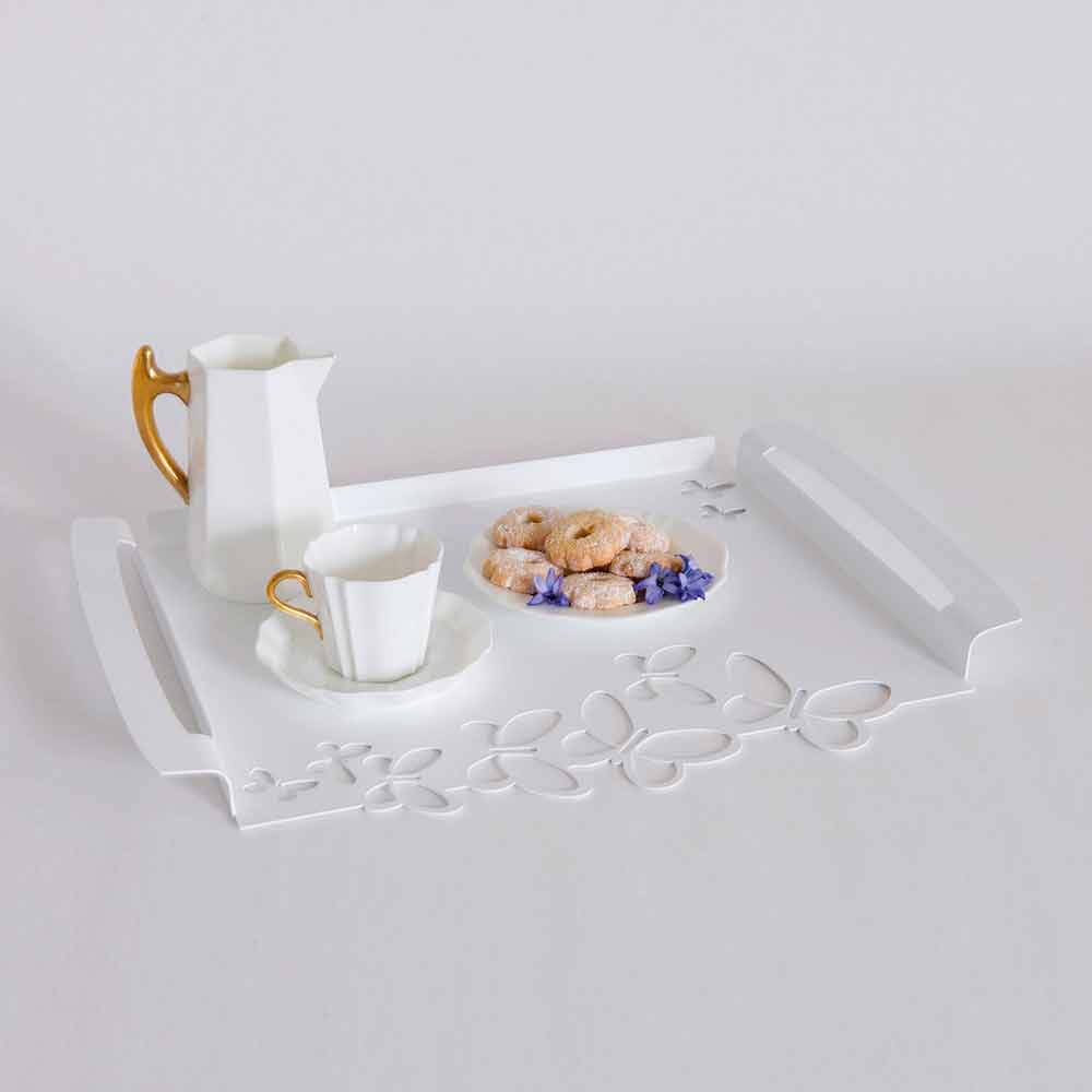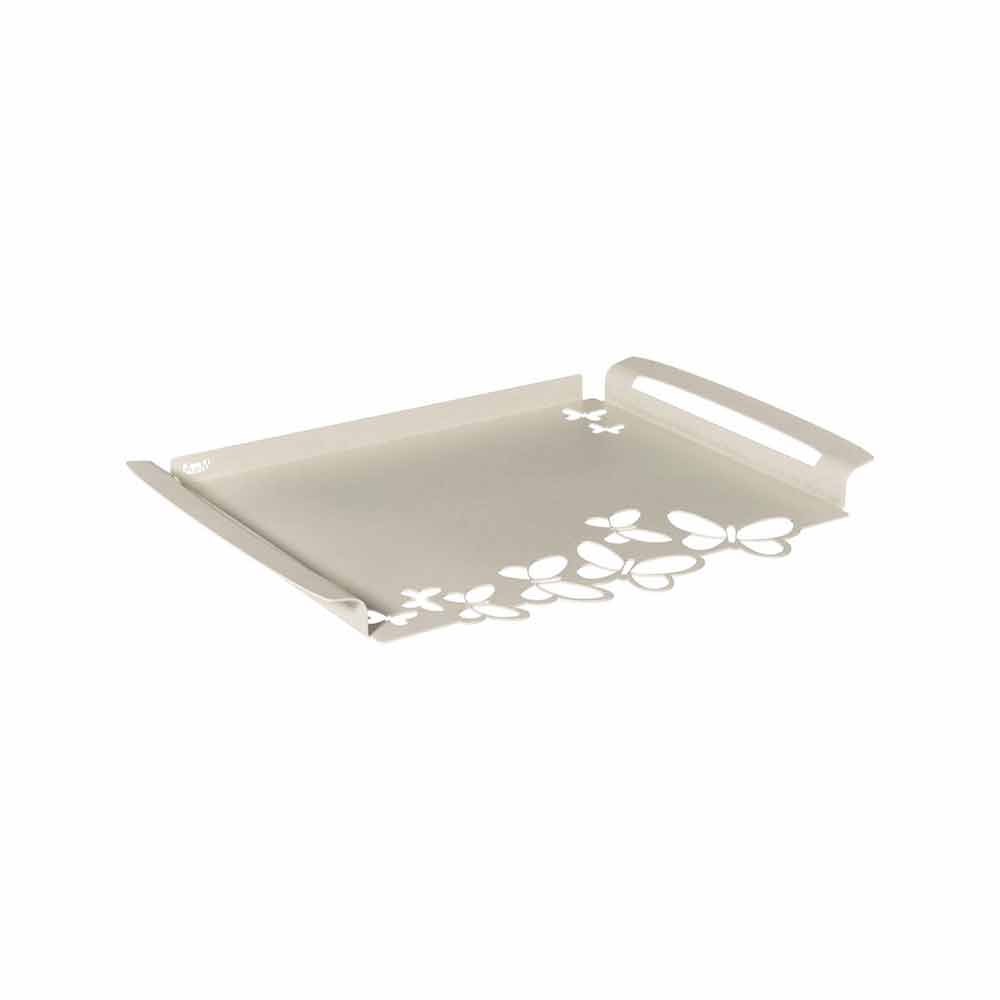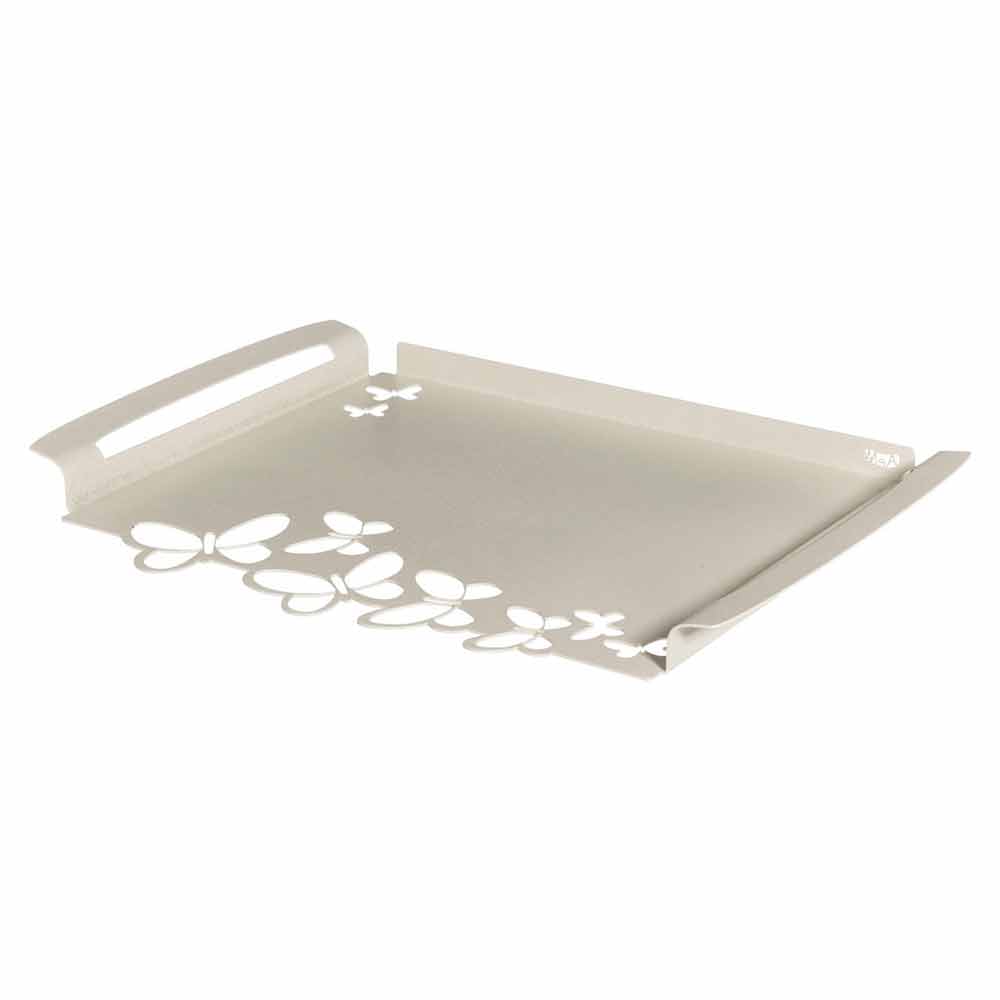 Nowoczesna prostokątna taca z białego, beżowego lub kości słoniowej ręcznie wykonana we Włoszech.