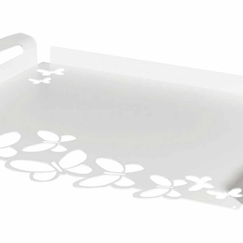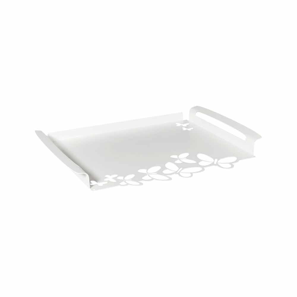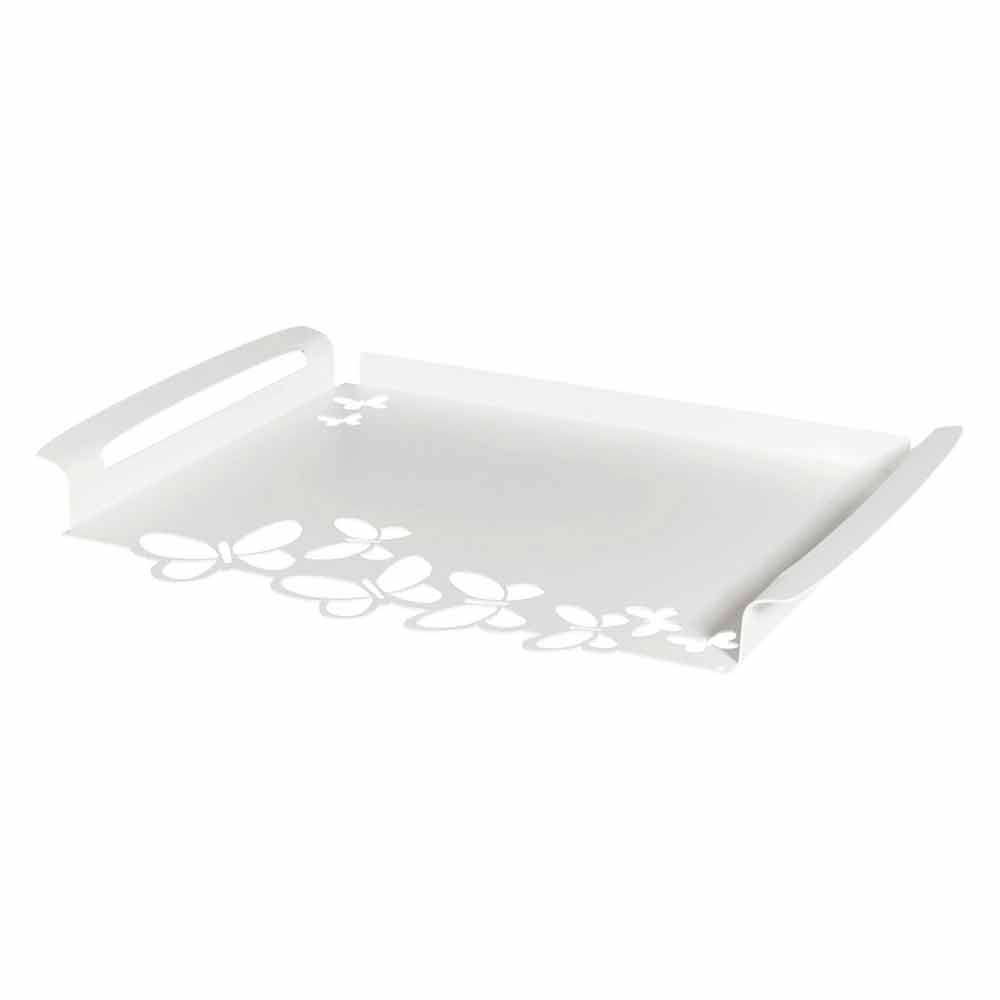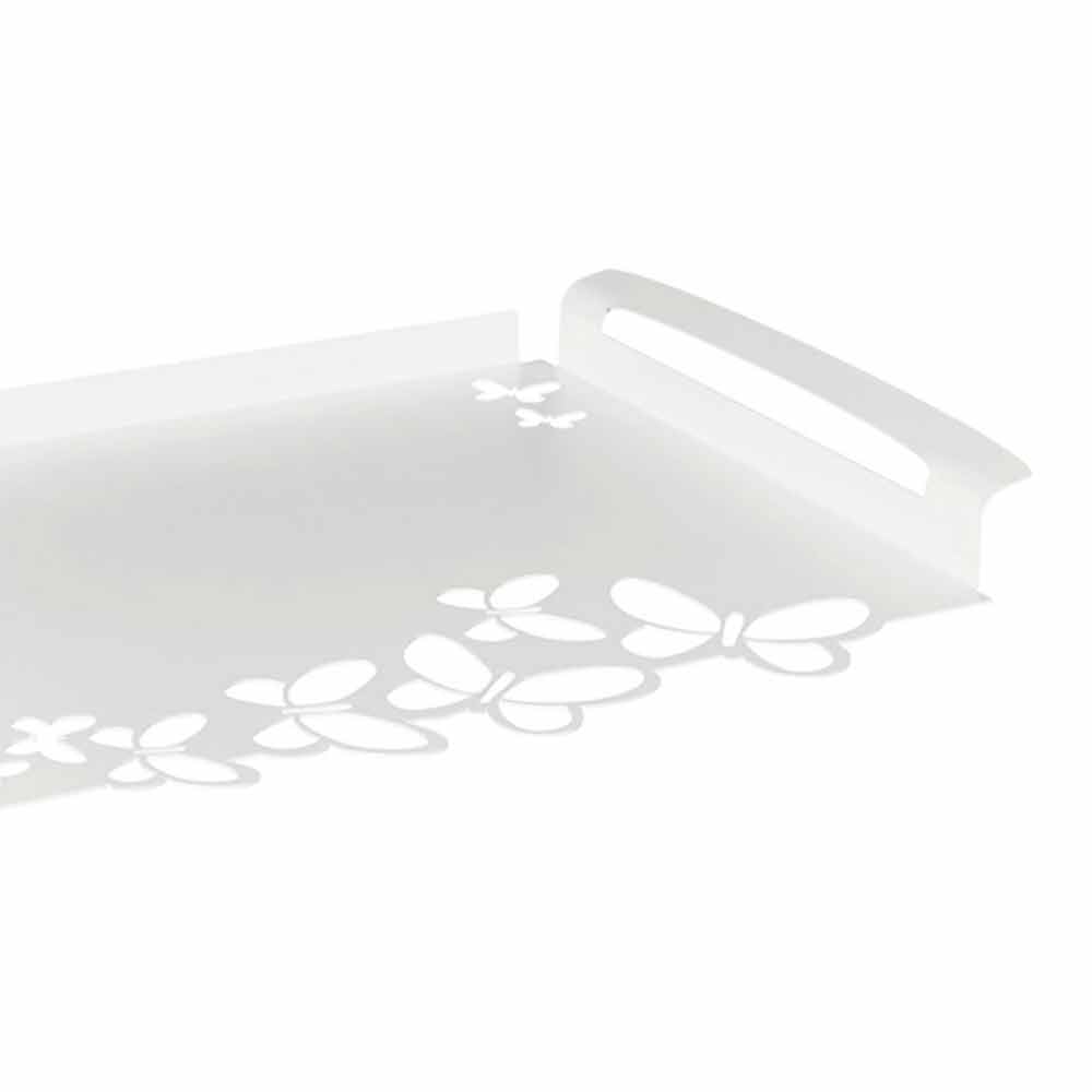 Nowoczesna prostokątna taca z białego, beżowego lub kości słoniowej ręcznie wykonana we Włoszech.