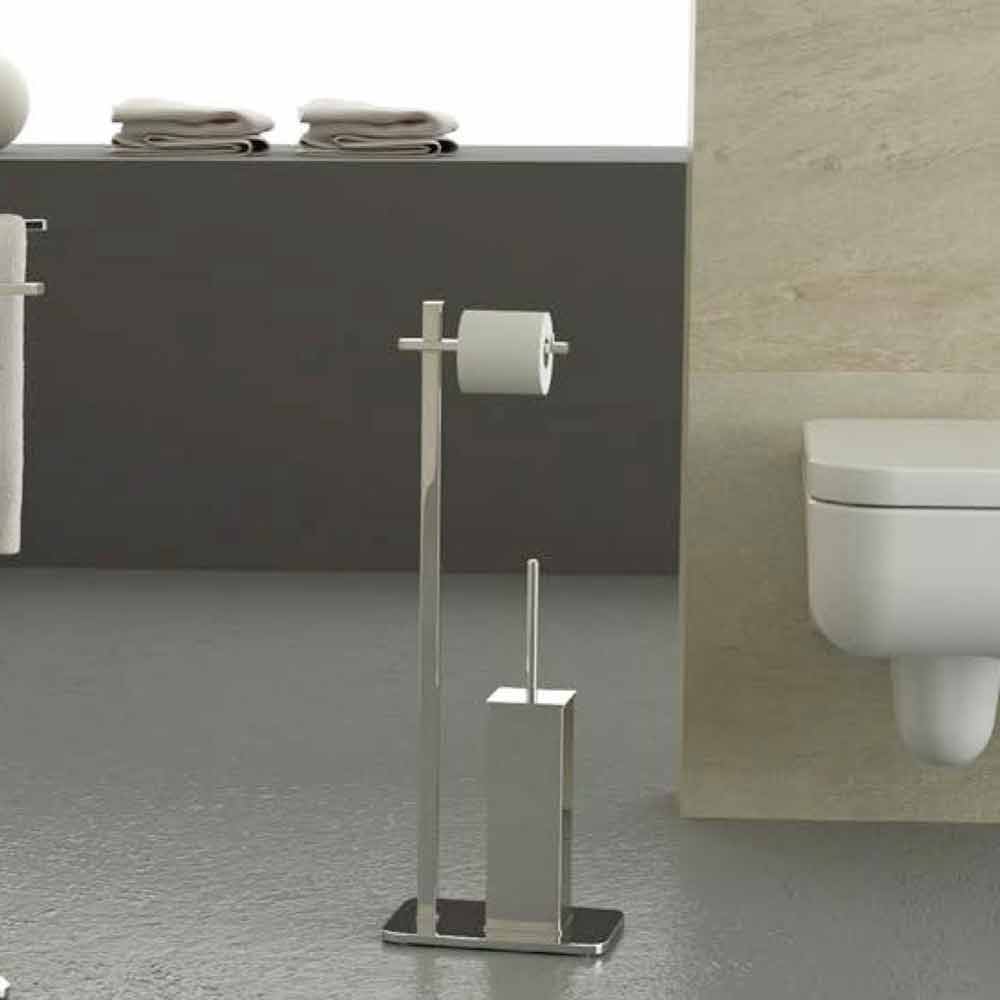 Nowoczesna wolnostojąca rolka i szczotka toaletowa z chromowanego żelaza Made in Italy.