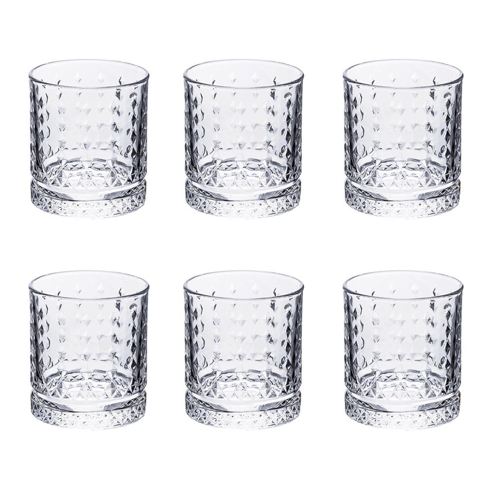 Szukasz elementu ponadczasowego blasku ? Ten zestaw 12 szklanych szklanek jest uosobieniem elegancji. Każde szkło jest dziełem sztuki, wyrytym geometrycznym wzorem , który załamuje światło w kalejdoskop iskier. Solidna podstawa zapewnia idealną równowagę, a gładka krawędź zapewnia delikatny dotyk na ustach przy każdym łyku. Kieliszki te są hołdem dla elegancji i wyrafinowanego designu, idealnie nadają się do upiększenia świątecznego stołu lub dodania odrobiny luksusu codziennemu życiu. Podawaj najlepsze alkohole w tych szklanych arcydziełach.