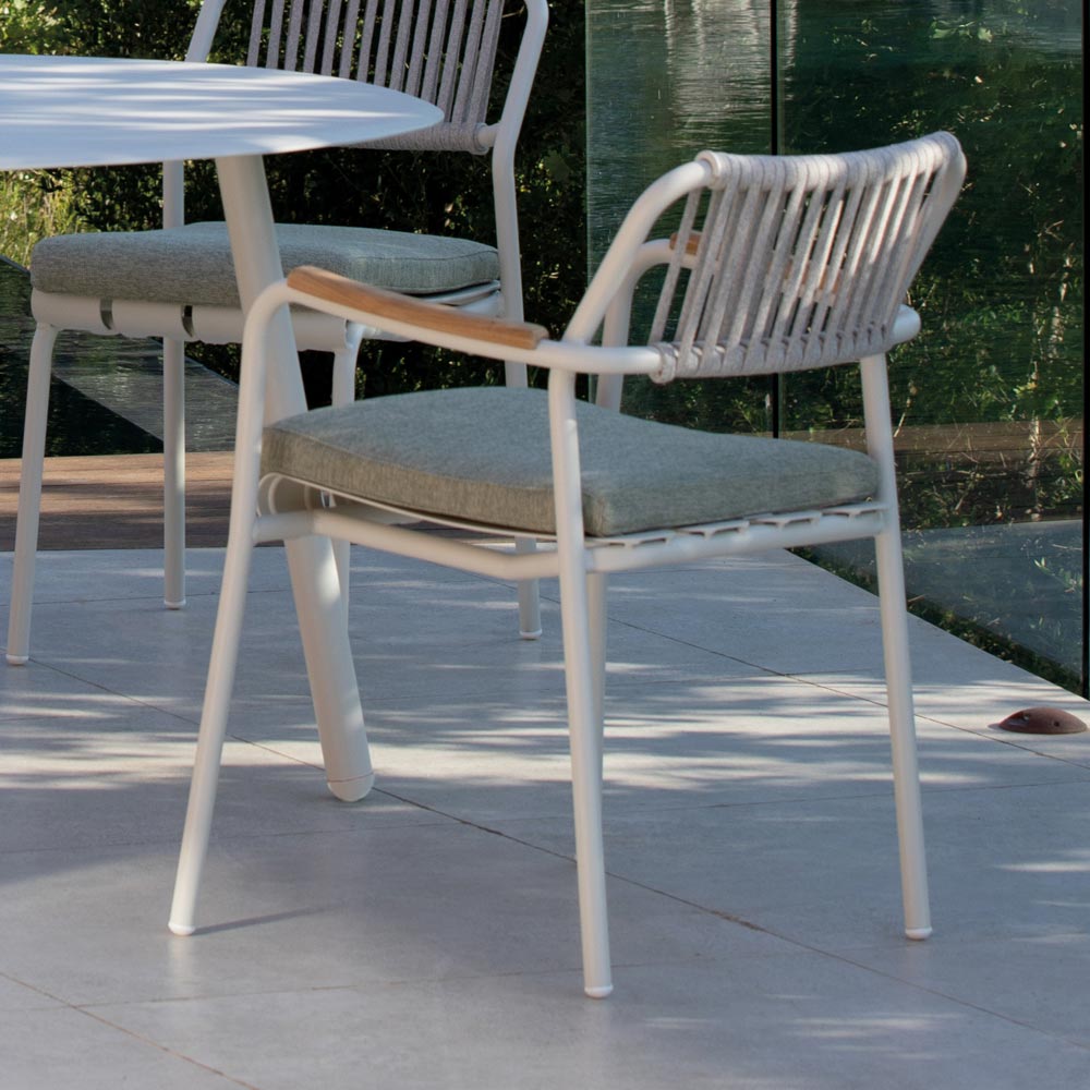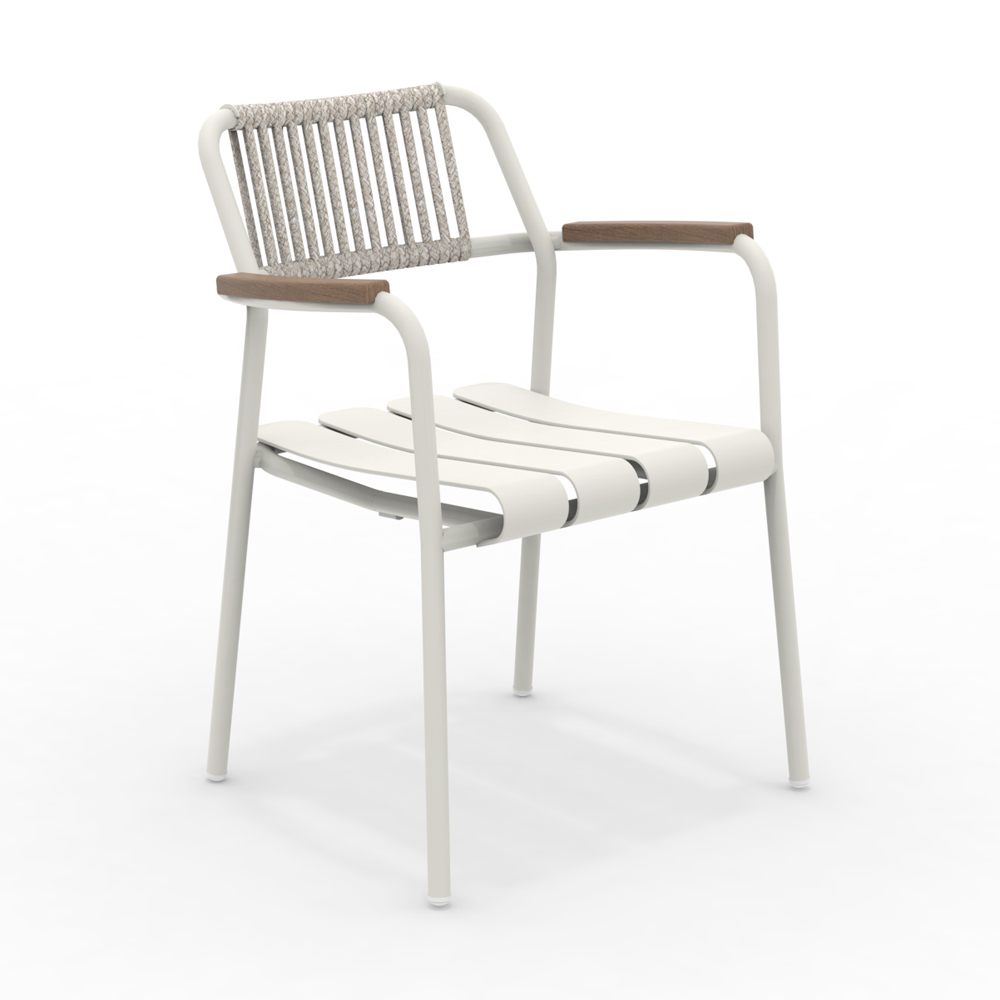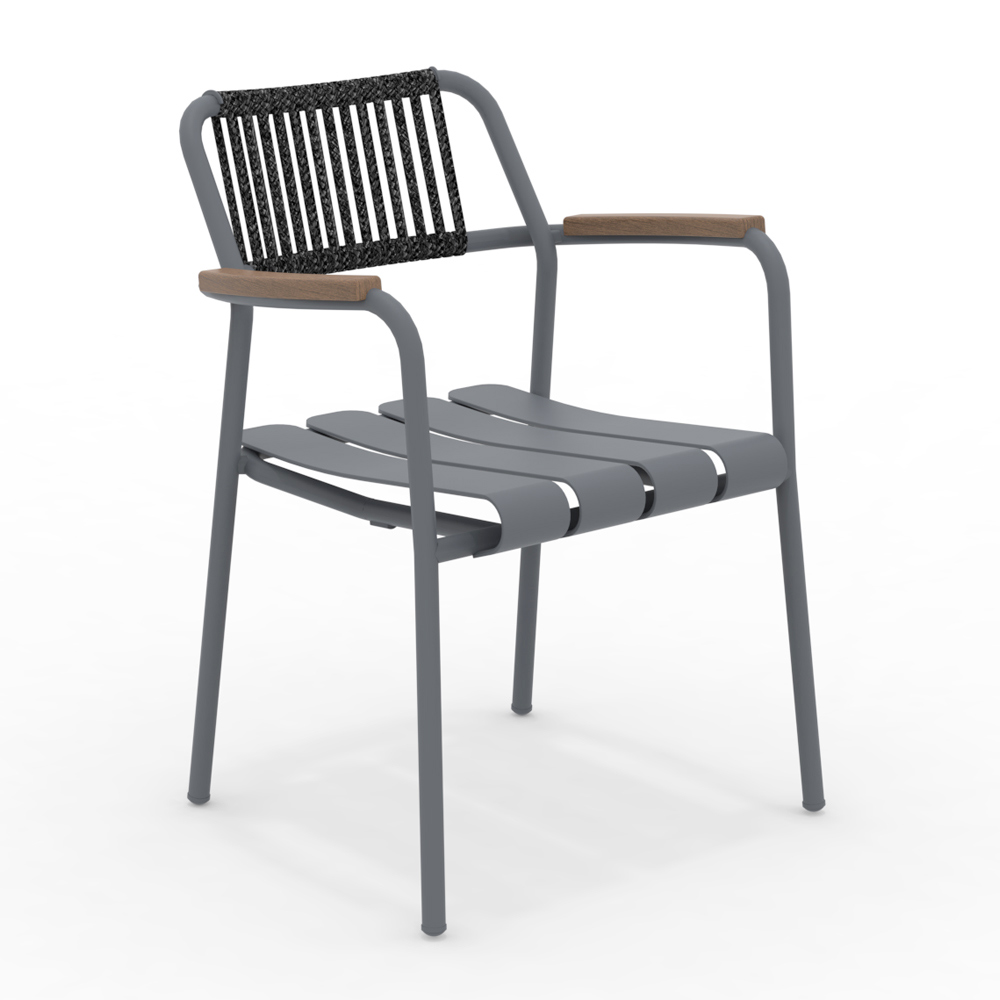 Lekka, ale solidna konstrukcja została zaprojektowana tak, aby zapewnić najlepszy komfort, z ergonomicznym siedziskiem i wyprofilowanym oparciem z liny , które zapewniają wygodne i relaksujące podparcie. Aluminiowe listwy nadają dynamiczny i nowoczesny wygląd, a wykończenie dodaje odrobinę elegancji i wyrafinowania.