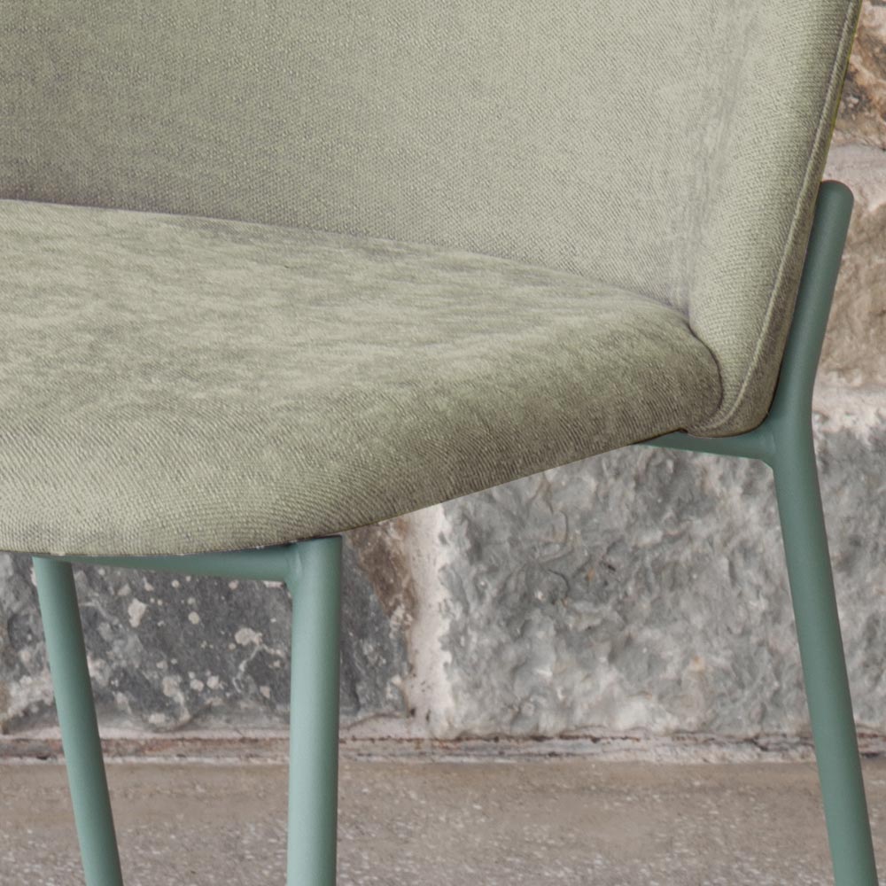 Krzesła o nowoczesnym designie, zdefiniowanym przez miękkie linie, które gwarantują wygodę i wszechstronność. Charakteryzują się poszyciem dostępnym w różnych kolorach i materiałach, co pozwala dopasować je do różnych stylów wyposażenia. Malowane proszkowo metalowe nogi podtrzymują tapicerowany korpus, a dopasowane szwy nadają produktowi czysty i elegancki wygląd. Ta kolekcja jest idealna dla tych, którzy szukają elementów wyposażenia o nowoczesnym designie, które nie rezygnują z komfortu.