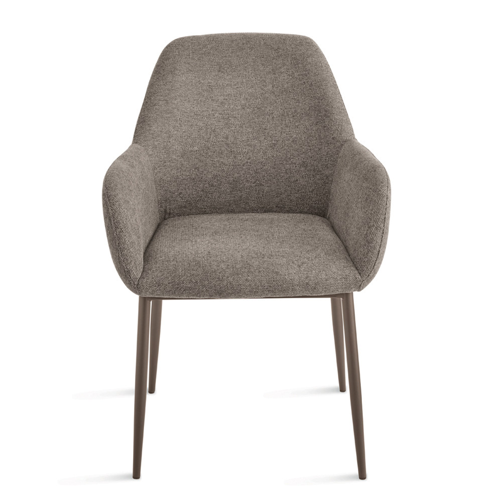 Krzesło charakteryzuje się szerokim, wygodnym siedziskiem z kwadratowymi podłokietnikami, przypominającymi mały, kompaktowy fotel. Taka konstrukcja zapewnia wyjątkowy komfort bez uszczerbku dla elegancji, dzięki czemu idealnie nadaje się do relaksu lub rozrywki.