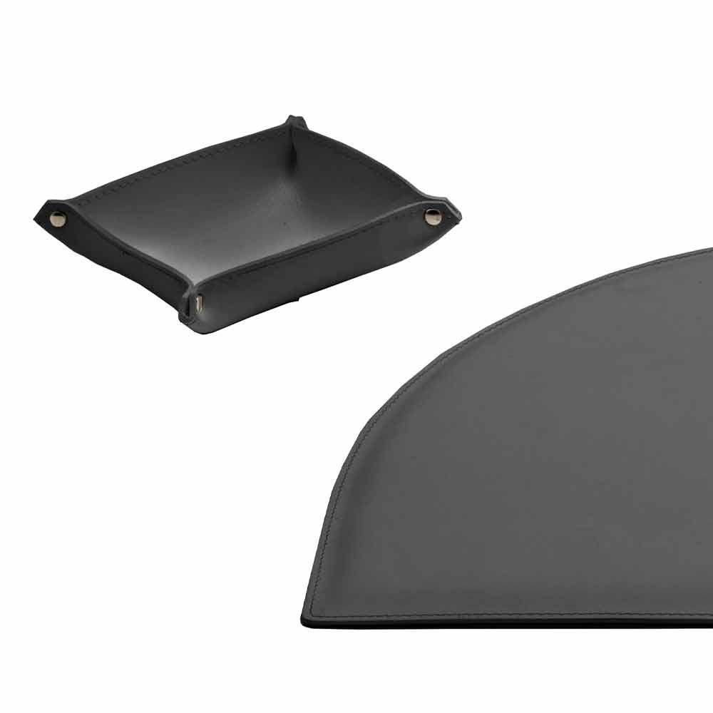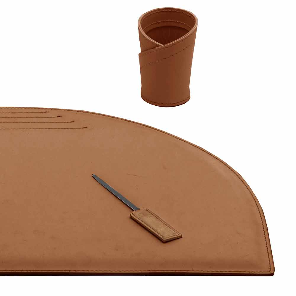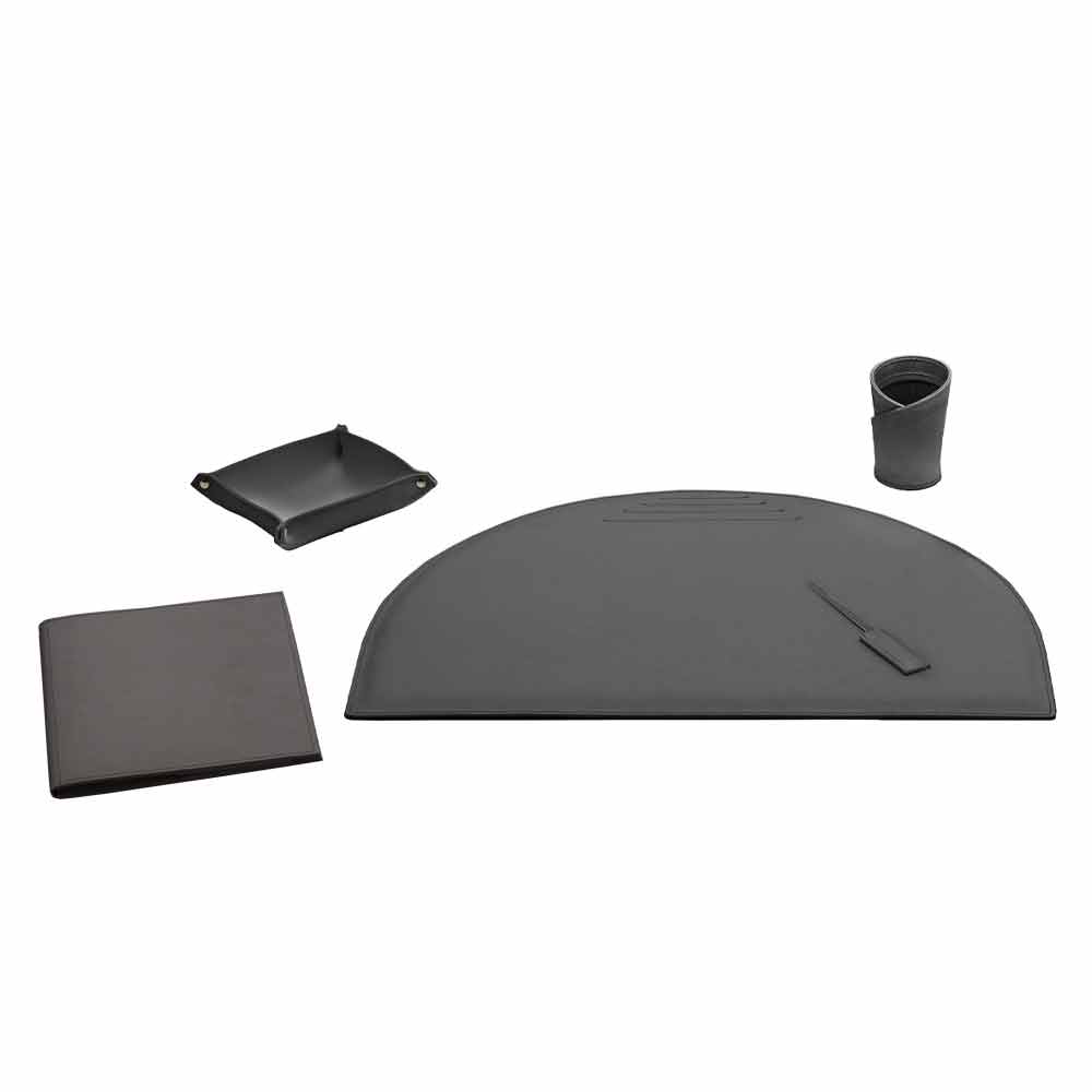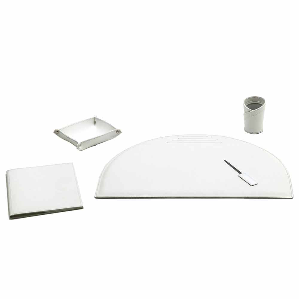 Akcesoria na biurko ze skóry klejonej, nowoczesny design, 5 sztuk, Made in Italy Medea