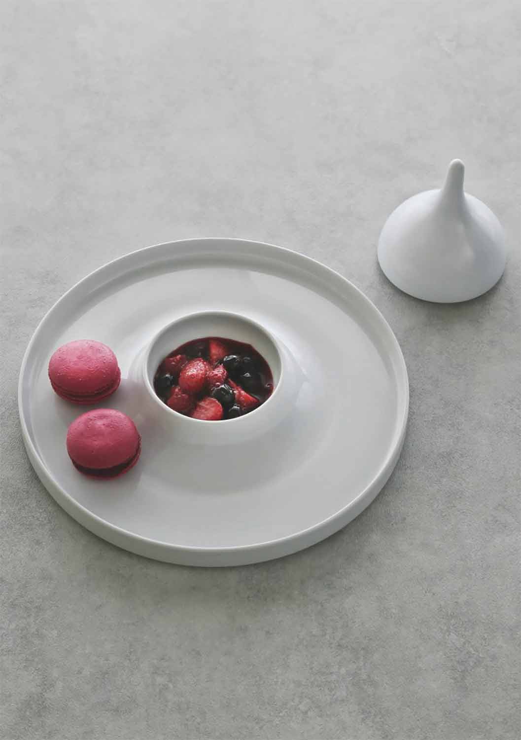 talerzy i miseczek do aperitifu jest ultranowoczesny i elegancki, zgodnie z potrzebami nowej globalnej diety. Proste i nieoczywiste rozwiązanie do degustacji i przekąsek w firmie, kreujące wyrafinowaną i współczesną atmosferę.