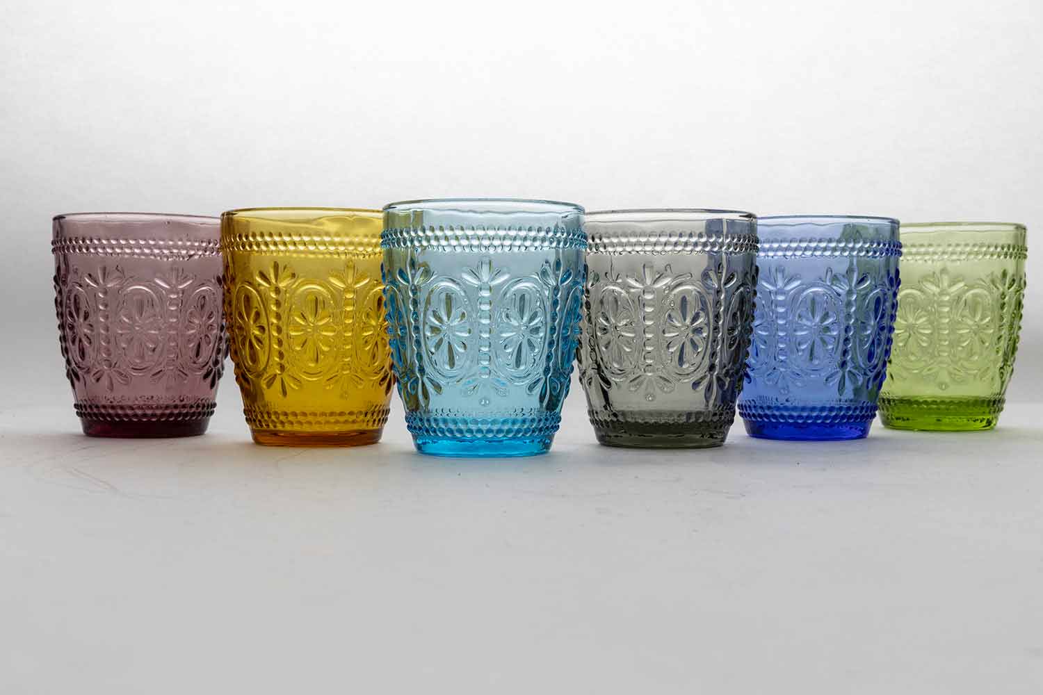 12-częściowe zdobione i kolorowe szklanki do picia.