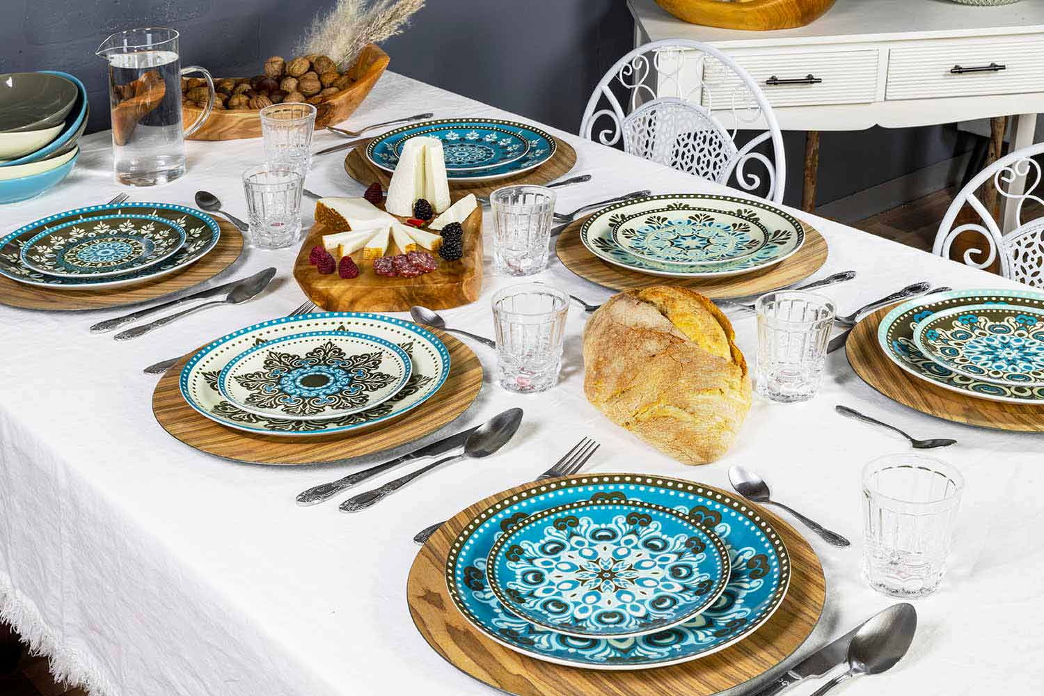 - 6 miejsc na stole w 6 dekoracjach / kolorach innych niż inne naczynia tego samego zestawu
