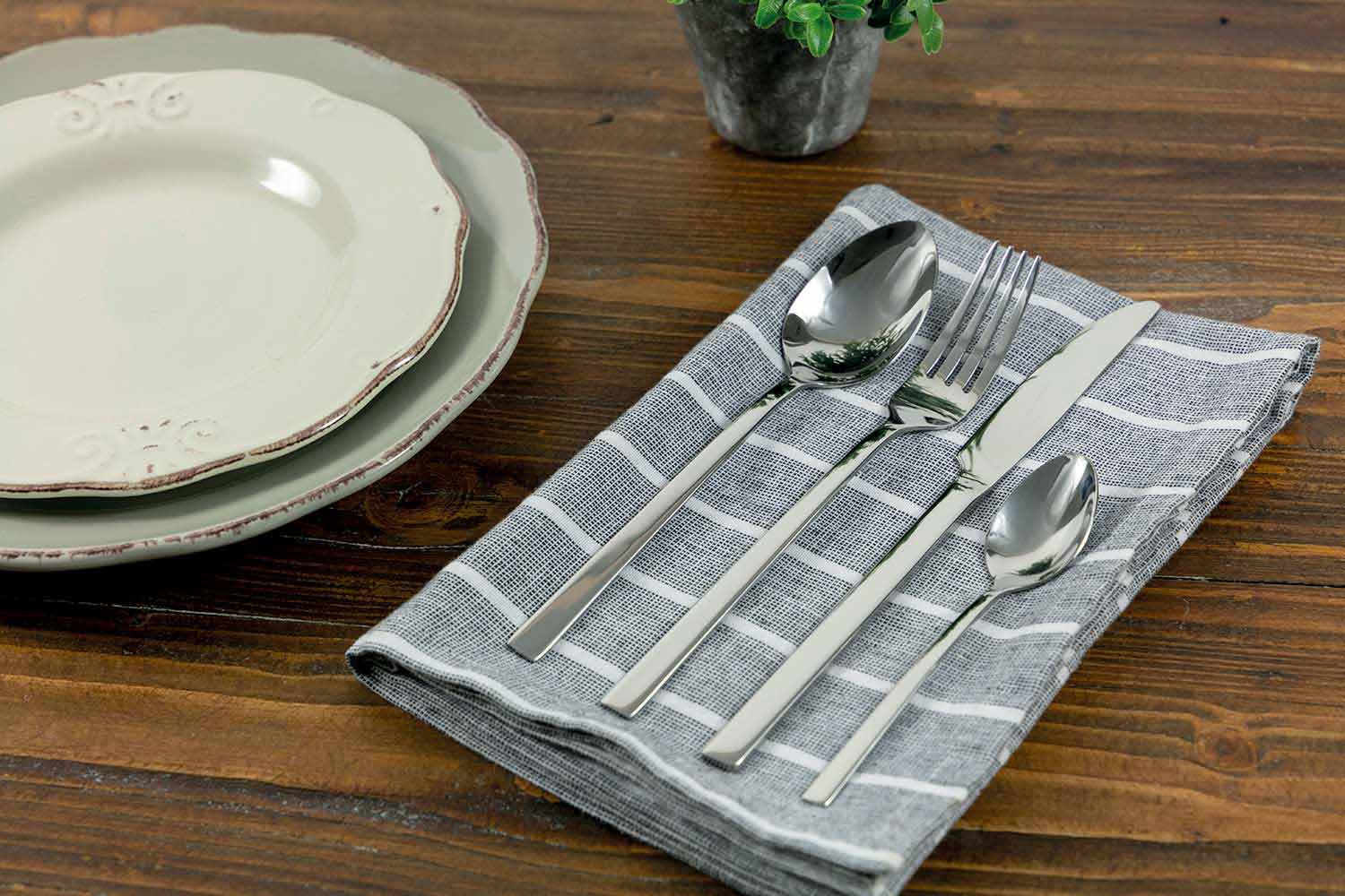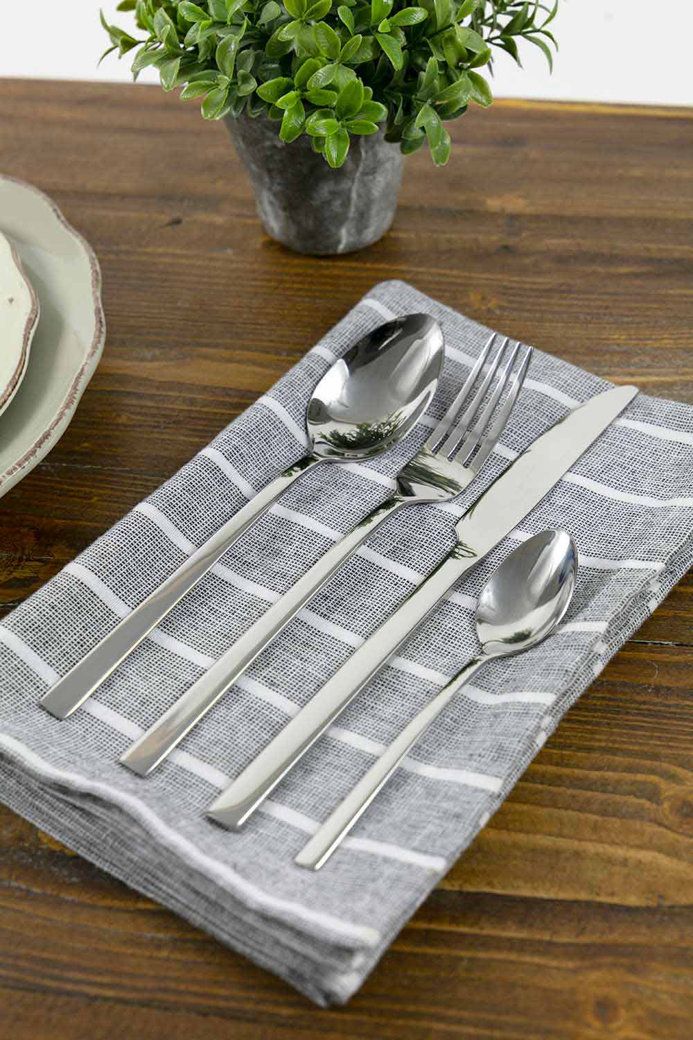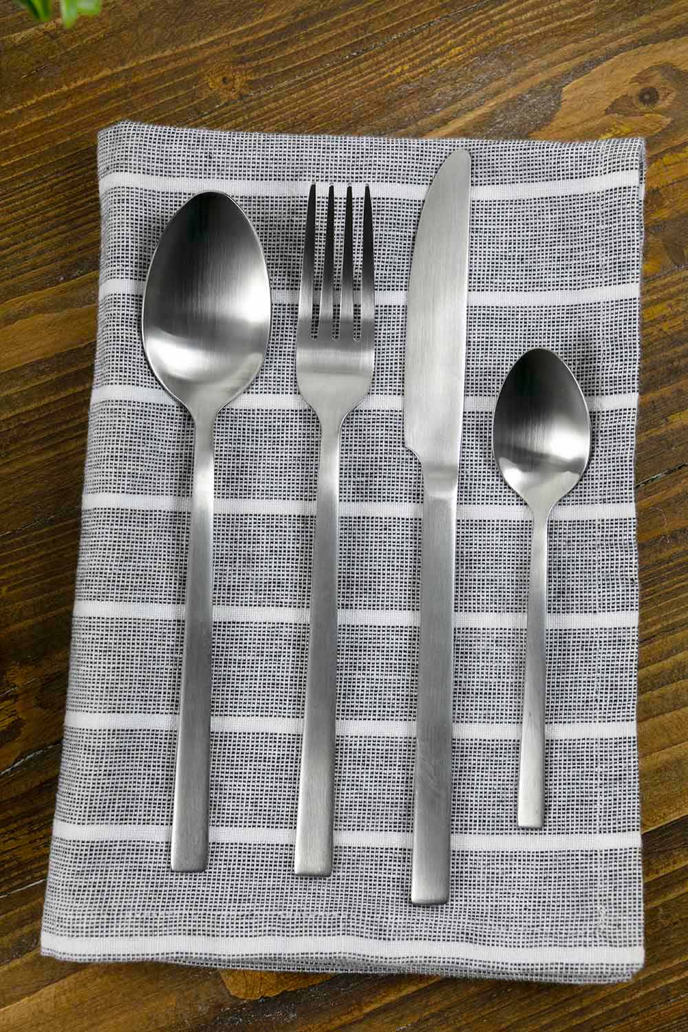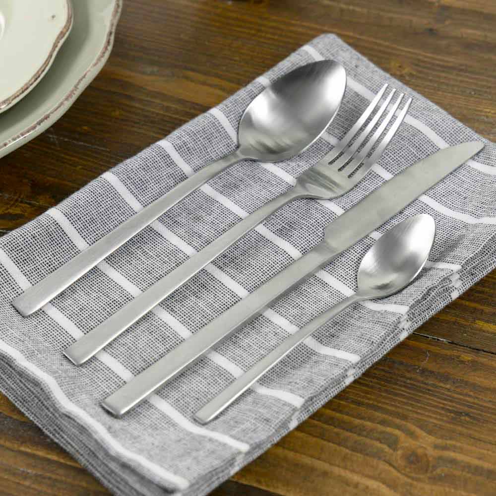 Stwórz prosty i elegancki stół za pomocą tej usługi sztućców o prostym i minimalistycznym designie, w całości wykonanym ze