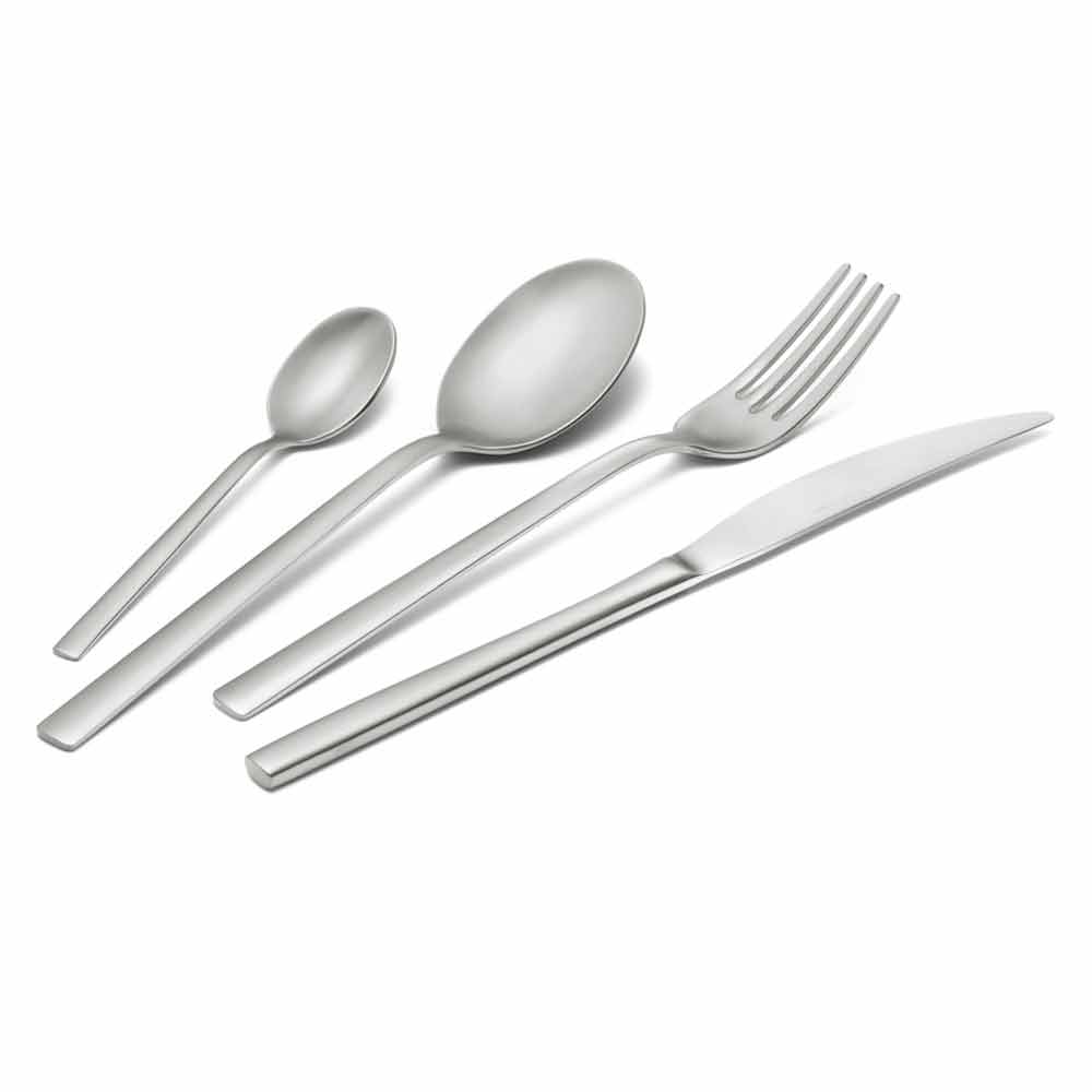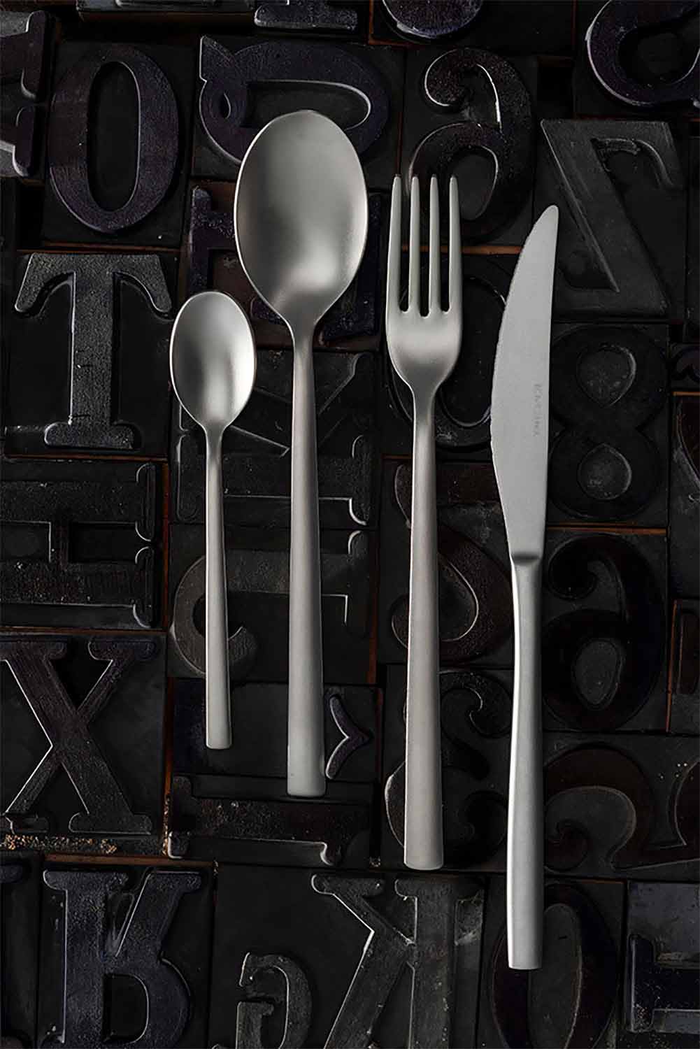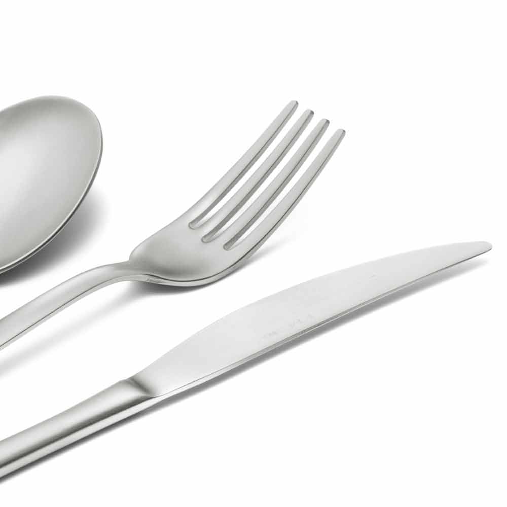 Kompletny zestaw sztućców z piaskowanej stali nierdzewnej, 24 sztuki made in Italy.