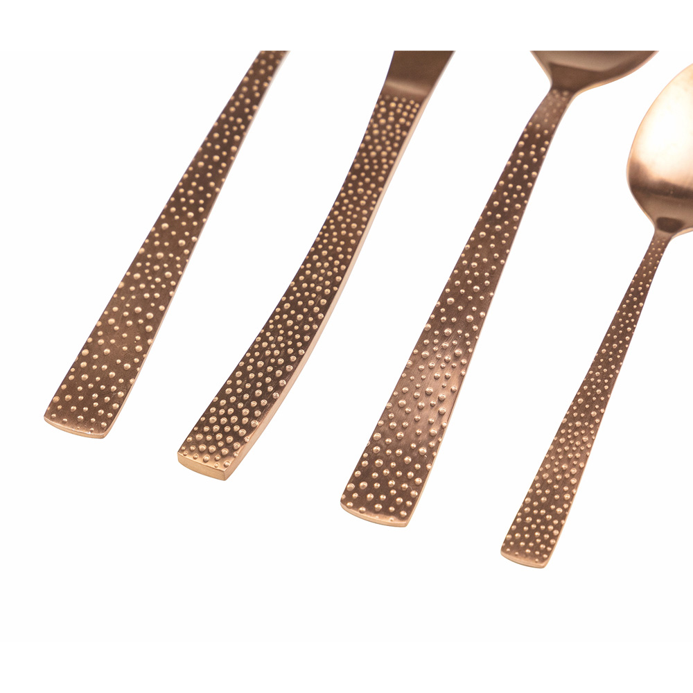 Designerski zestaw sztućców ze stali miedzianej z efektem szylkretu, 24 części.