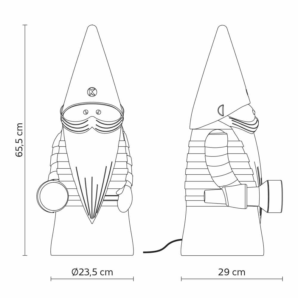 Ta oryginalna i wyjątkowa zewnętrzna lampa podłogowa chce bawić swoim dowcipnym i zabawnym kształtem przedstawiającym ósmego krasnoluda Królewny Śnieżki. To ironiczne uzupełnienie w gardo, aby scharakteryzować wewnętrzne i zewnętrzne środowiska smakiem i stylem dla maksimum współczesności i odrobiny wyjątkowości.