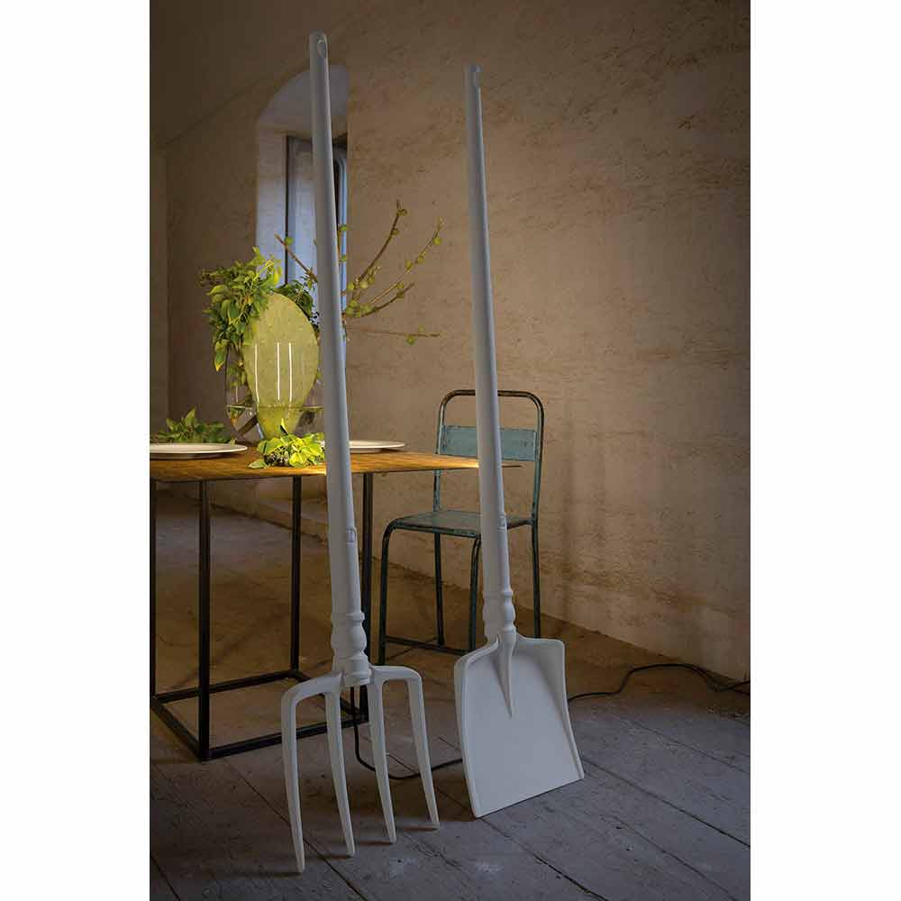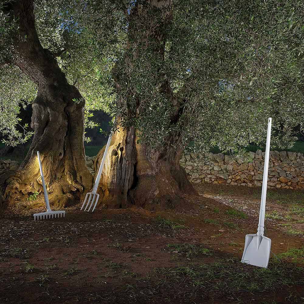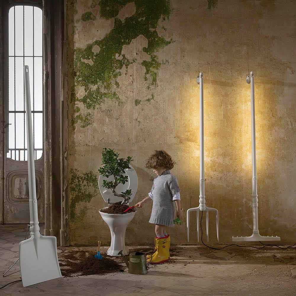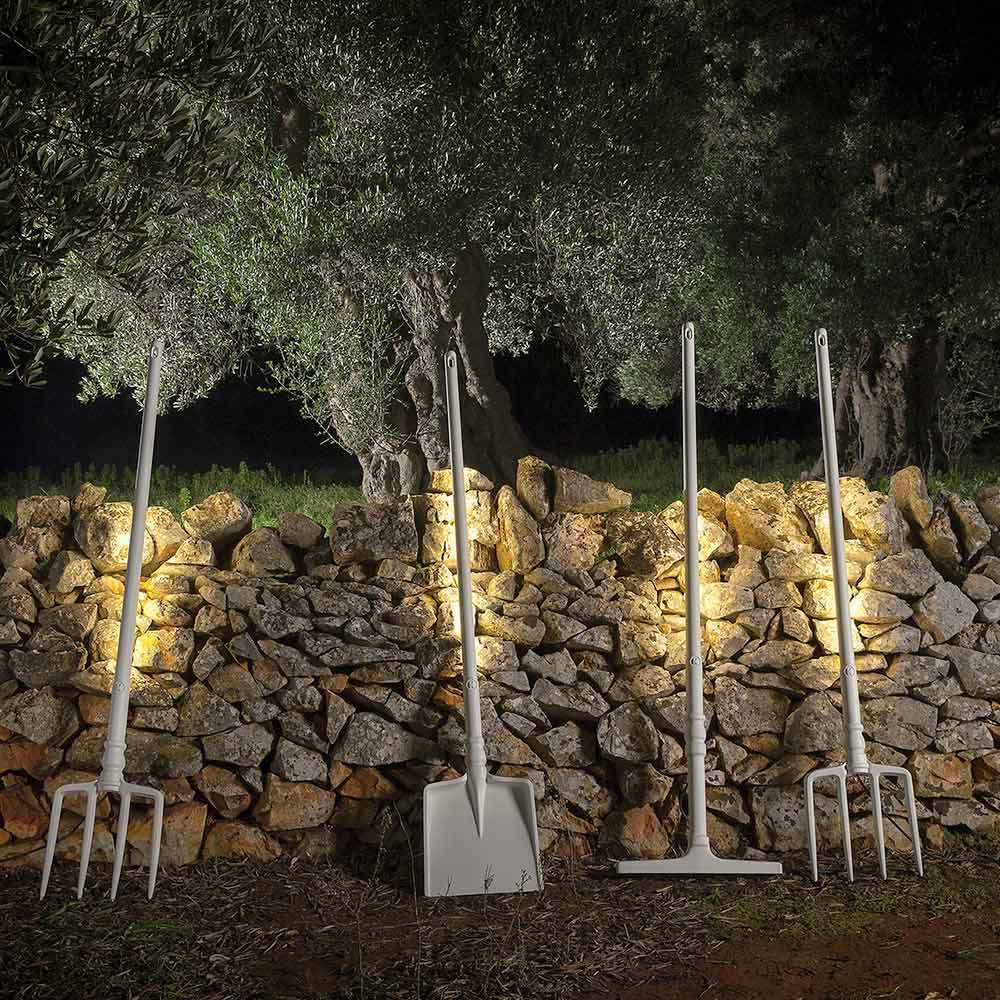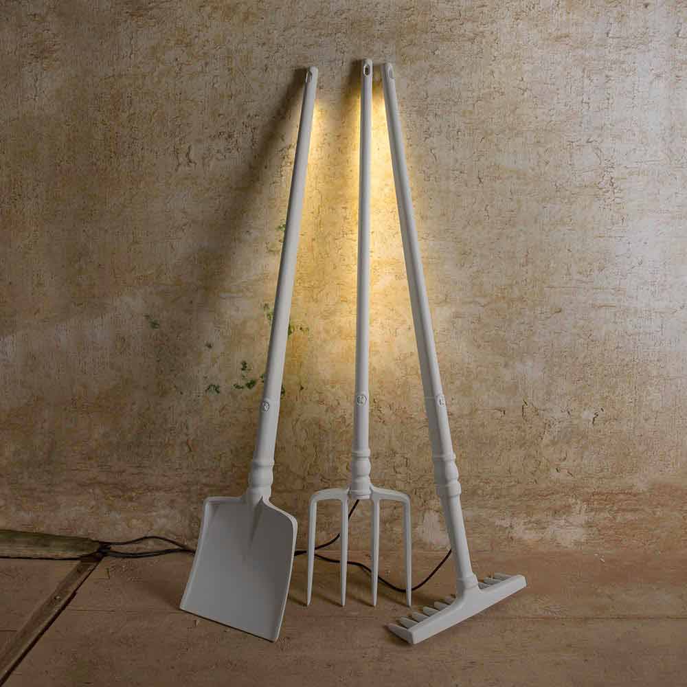 Ta oryginalna i wyjątkowa zewnętrzna lampa podłogowa wykonana jest w 3 różnych kształtach, aby przypomnieć nam narzędzia, których używa się coraz rzadziej: widły, łopata i grabie.