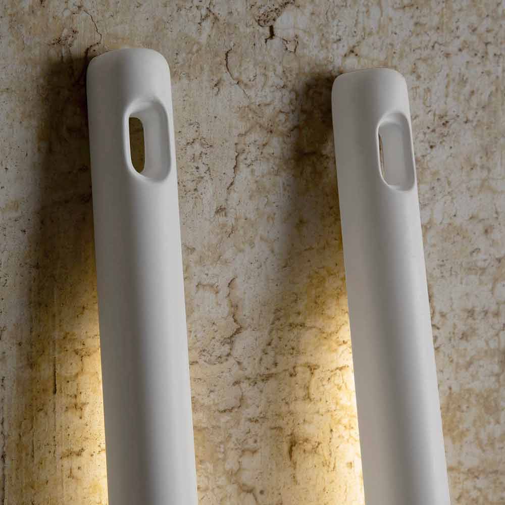 Lampa wykonana jest z nieprzezroczystego białego technopolimeru dla całkowicie włoskiego projektu, który poprzez niekonwencjonalne eksperymenty i ciągłe poszukiwania tradycji i nowoczesności jest w stanie zadziwiać, odważać i ekscytować, pozwalając wyrazić swoje emocje poprzez oryginalny i osobisty użytek. dekoracyjne światło.