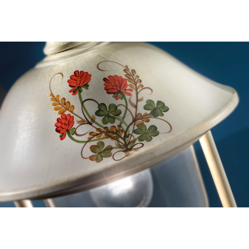 Ta zewnętrzna lampa wisząca jest w całości wykonana z aluminium ozdobionego ręcznie malowanymi kwiatami dla klasycznego i harmonijnego stylu pomiędzy kształtem a kolorami.
