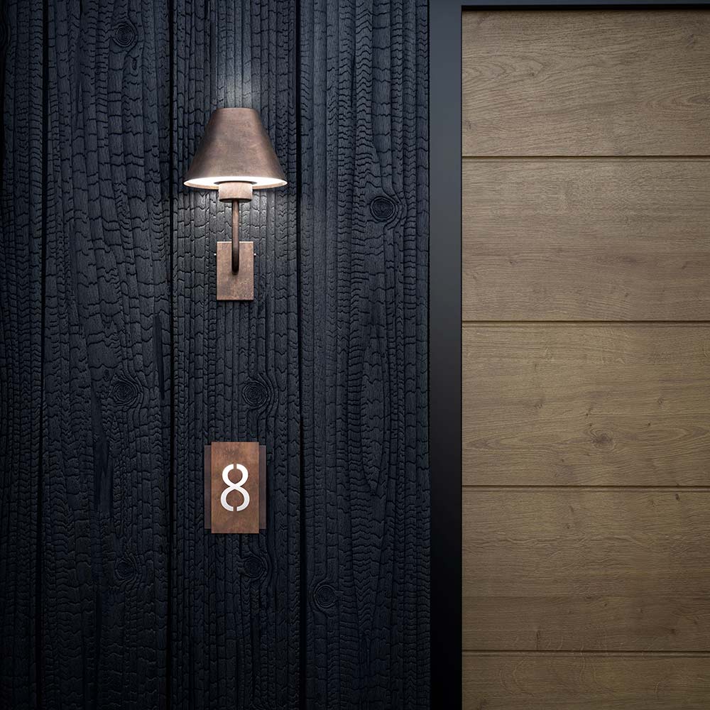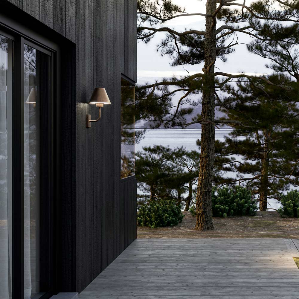 wyprodukowane we Włoszech. Kolekcja lamp zewnętrznych zrodziła się z chęci przeniesienia cech wyposażenia wnętrz do produktów przeznaczonych na zewnątrz, aby stworzyć przyjazną i rodzinną atmosferę nawet na świeżym powietrzu. Dzięki liniom inspirowanym nordycką estetyką lampy podłogowe lub ścienne wykonane są z mosiądzu i miedzi.